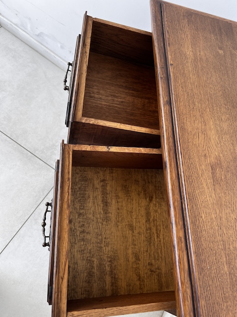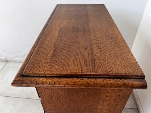 Стильный комод из древесины дуба. Очень хорошенькая. Он находится в хорошем состоянии. Повреждений и дефектов нет. Имеет типичные следы использования. Замок функциональный, в комплекте есть ключ. Комод готов к установке.