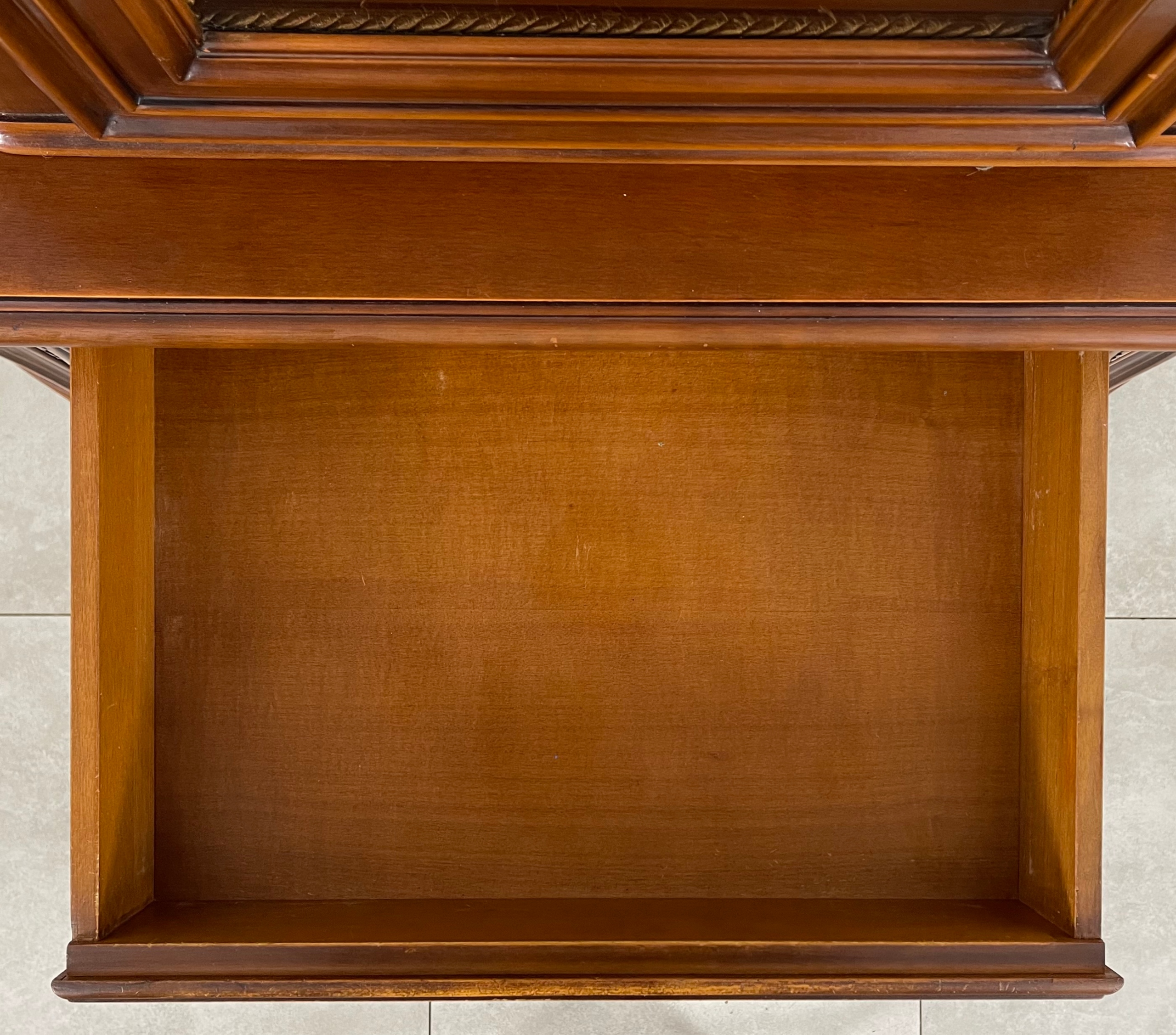 Целое украшено ручными деталями - листьями Acanthus, раковинами, цветочными гирляндами и пиковым кружевом с причудливой формой. Этот предмет мебели впечатляет богатством скульптуры, изысканных форм и тщательно продуманной отделки - это настоящая жемчужина для любителей антиквариата и классического дизайна.