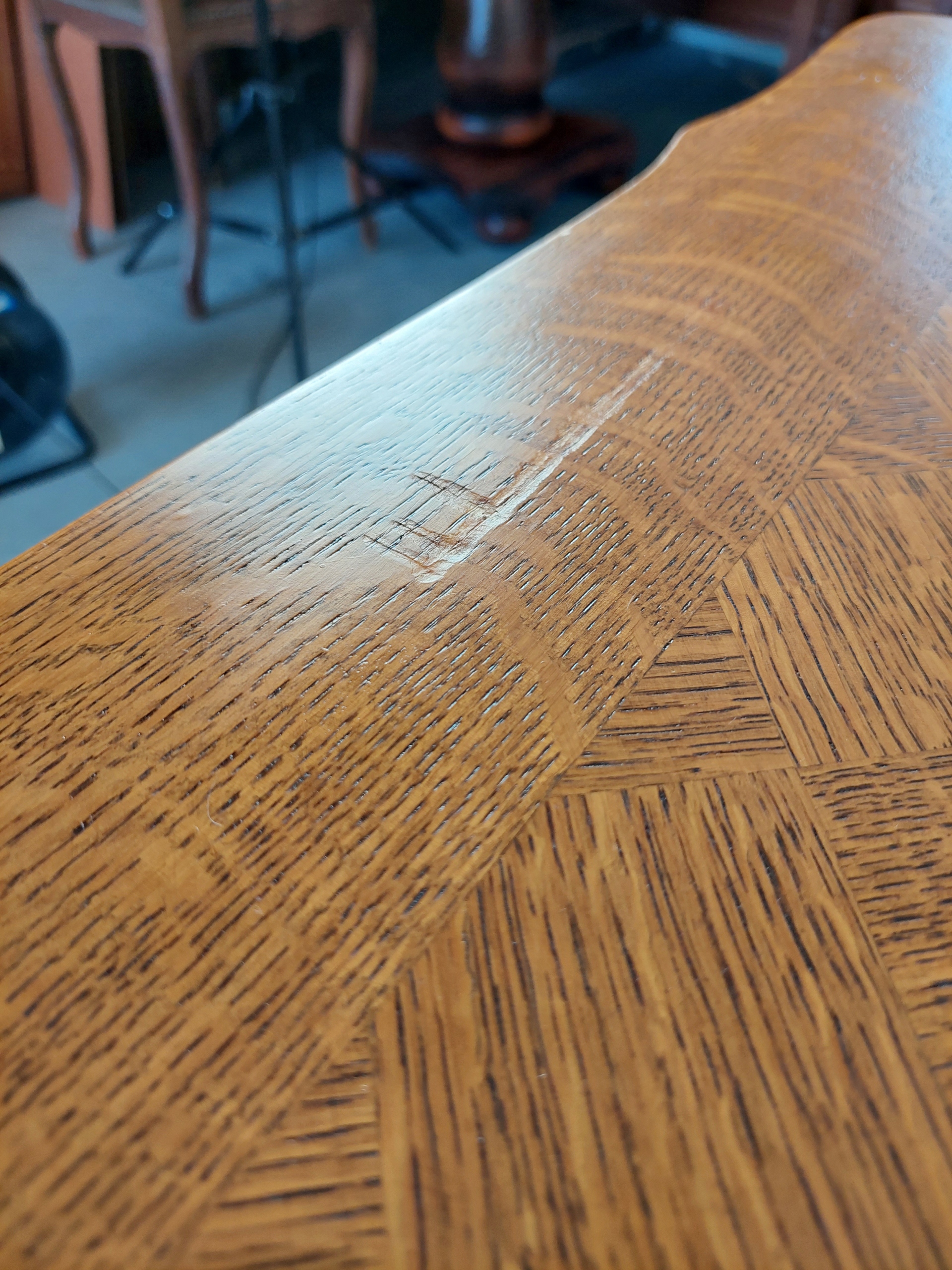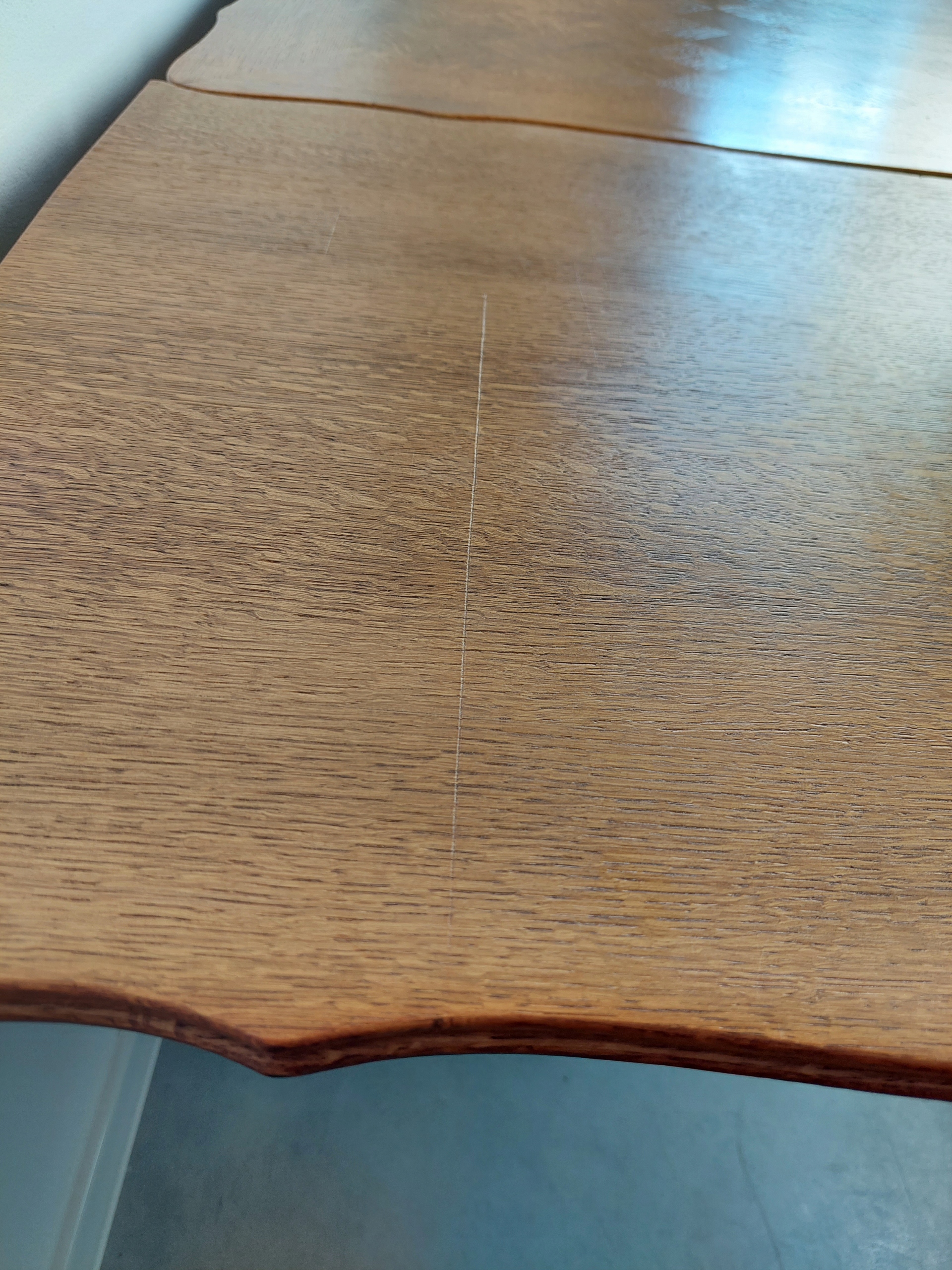 Стильный дубовый стол Людвик на гнутых ножках. Для типичного использования царапины/изменения цвета и сильные потертости в 2 точках. Стол раскладывается, верхняя часть остается на месте, а боковые части выдвигаются из-под него. Подробности на фотографиях ниже. Цена указана за стол. (Ножки при транспортировке не откручиваются, стол отправляется заказчику целиком).