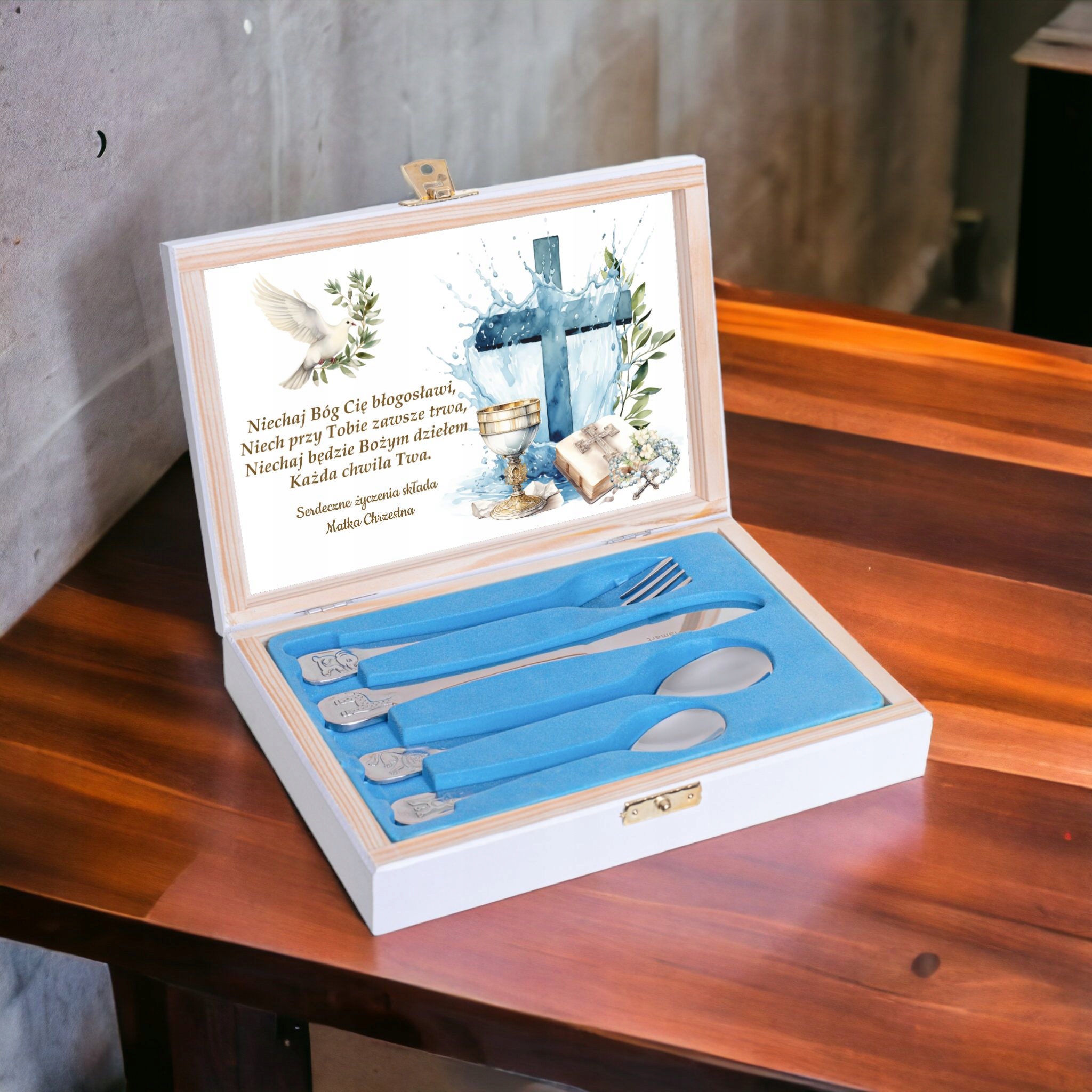 ПОДАР НА СВЯТОЕ КРЕЩЕНИЕ - СТОЛОВЫЕ ПРИБОРЫ В КОРОБКЕ С ГРАВИРОВКОЙ