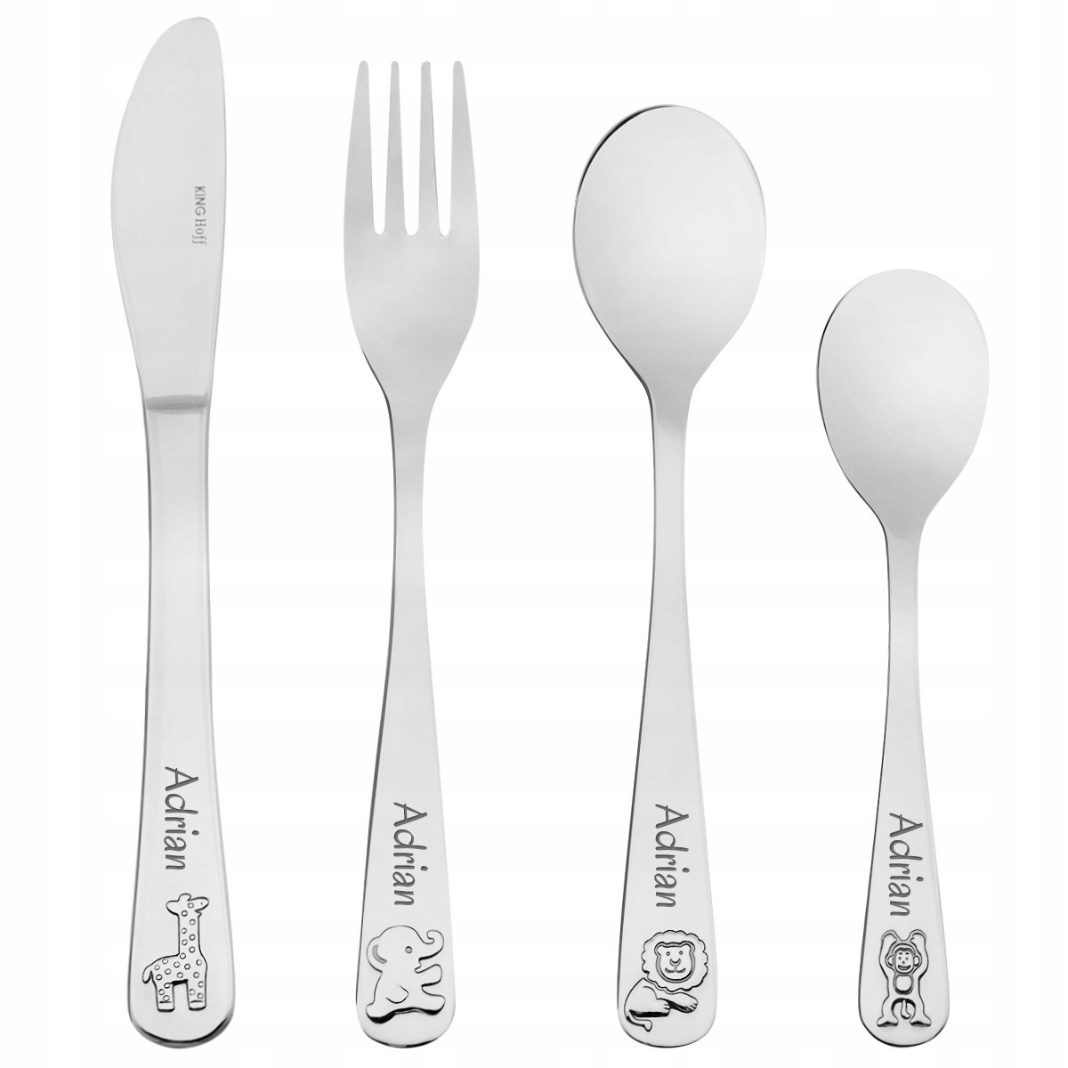 Декоративные столовые приборы для ребенка станут приятным дополнением к трапезе даже для самого привередливого едока. Прекрасный подарок мальчику или девочке на крещение, год или другой день рождения. Изделия изготовлены из высококачественной нержавеющей стали. На ручках изображены выпуклые изображения: слон, жираф, лев и обезьяна.