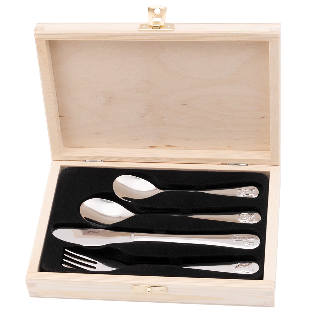 Детские столовые приборы с изображением животного Крещенский сувенир в коробке с принтом