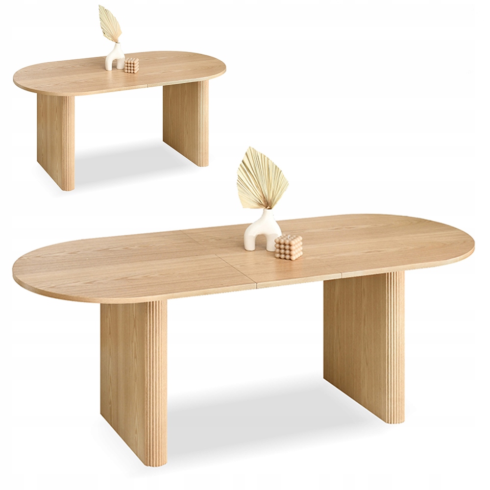 Стол агавы представляет собой современную и элегантную мебель с овальной формой. Он имеет верхнюю часть сгиба, длина которого может быть отрегулирована от 160 см до 200 см, благодаря дополнительной вставке, расположенной под столешницей. Верх изготовлен из дубовой плиты, которая придает столу естественный и теплый вид. Основание стола деревянная и имеет характерные разорванные края, что дает ему уникальный характер. Стол идеально подходит в столовой или в гостиной, внедряя элегантность и функциональность в интерьере.