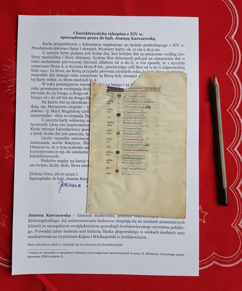 Язык рукописи: латынь — универсальный язык в средние века — широко используемый и известный во всей образованной Европе, а также в Польше (это также относится к светским писаниям — напр. юридические документы были составлены на латыни - международном языке того времени...)