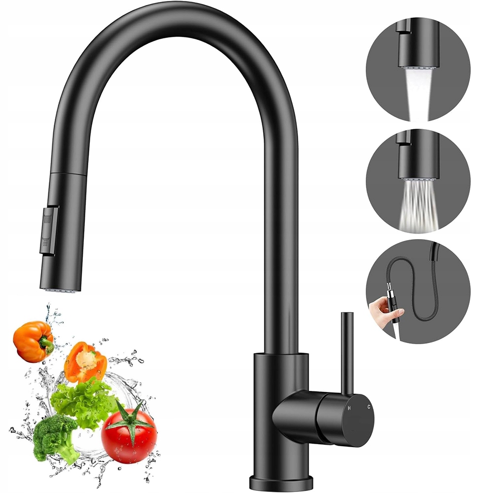 Красивая изогнутая батарея раковины в матовом черном, идеально дополнит вашу кухню. Cardan Shower делает очистку более гибкой, а вращающийся крана 360 ° позволяет использовать воду в любом направлении.