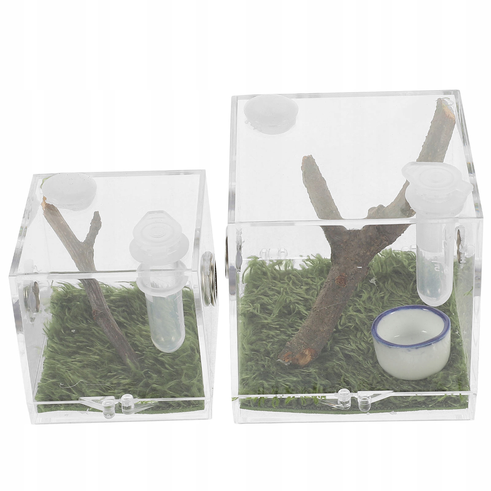 Сделано из акрилового материала, практичного и света. Подходит для тарантул, сверчков, улиток, небольших ящериц, черепах и других мелких рептилий.