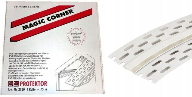 Magic Corner Protektor — профиль ПВХ с подвижной и мягкой центральной частью для создания всевозможных подвижных соединений вокруг стены или потолка в местах стыка гипсокартонных листов в соответствии с требованиями DIN 18181