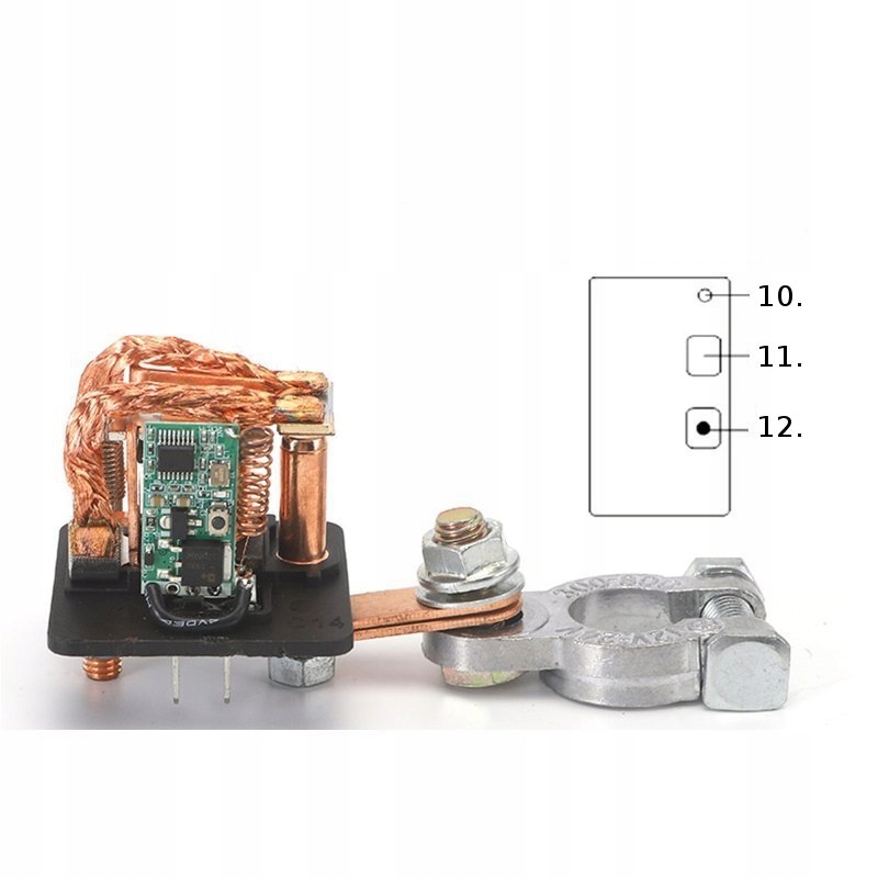 Автомобильное реле с зажимом, управляемое с пульта. Он позволяет удаленно отключать аккумулятор или другие устройства, подключенные через него, с максимальным длительным током до 200А.