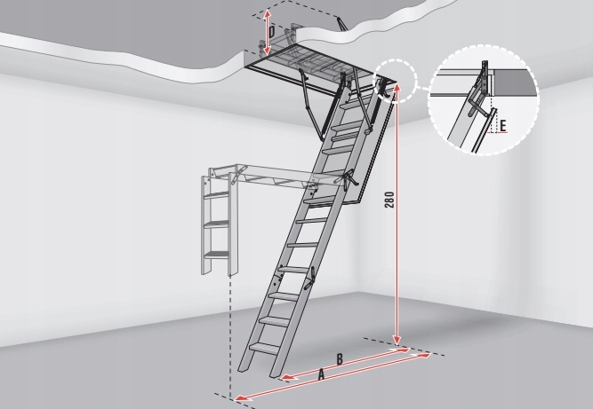Лестница объединяет преимущества функциональности, тепловых параметров и высокой долговечности по оптимальной цене. Лестница обеспечивает возможность легкого и безопасного выхода на чердак или чердак, после складывания они прячутся в потолке, не занимая место в комнате.