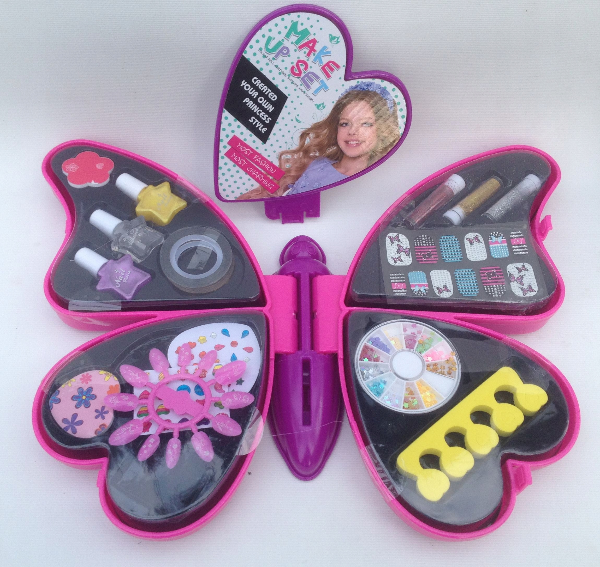 Представляем Вам косметический набор красоты в форме бабочки, незаменимый для юных леди, любящих подражать взрослым. Набор упакован в удобную трехэтажную радугу, которая легко поместится в любую сумочку. Благодаря этому набору ваши дети в игровой форме разовьют воображение, ловкость рук и физическую ловкость, самостоятельность и освоят основные косметические средства.
