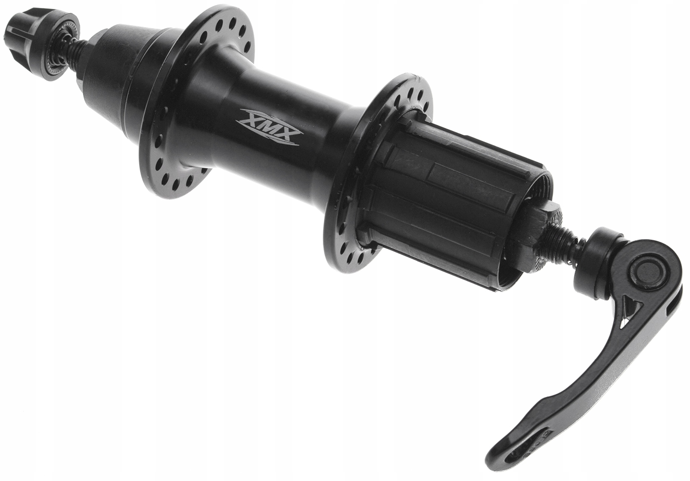 Задняя велосипедная втулка марки XMX. Хаб XMX A281QR изготовлен из высококачественного алюминия черного цвета. Он очень прочный и устойчивый к вредным факторам. Ступица имеет 36 отверстий для спиц, расположенных на фланцах. В ступице установлены высококачественные машинные подшипники с очень длительным сроком службы. Втулка подходит для 8,9-скоростных кассет. Имеет ось из хромомолибденовой стали длиной 145 мм, оснащенную QR-замком (быстросъемным).