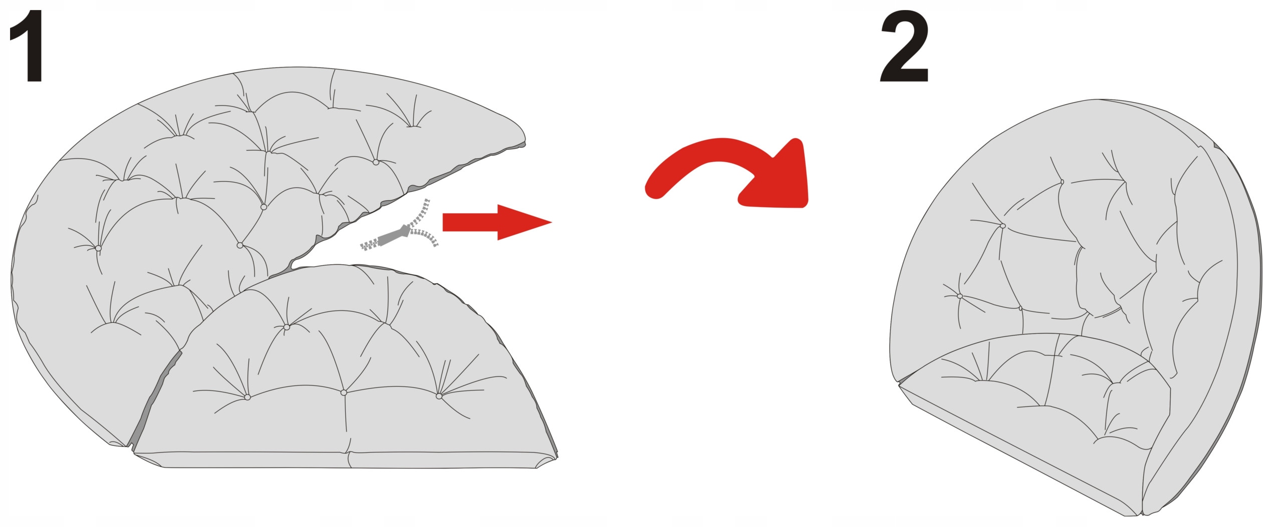 1. Обрезать два элемента подушки с ползунком. Расположение подушки на качелях. Подготовительная привязанность