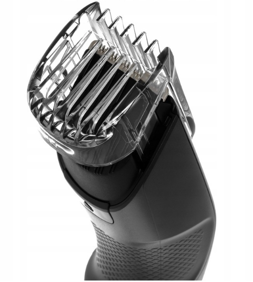Для резки бороды или разрезания нескольких дней бороды просто положите регулируемое насадку бороды с 12 заблокированными настройками от 1 мм до 23 мм. Расстояние между последующими настройками составляет ровно 2 мм. Вы также можете удалить насадку и кратко разрезать бороду до 0,5 мм.
