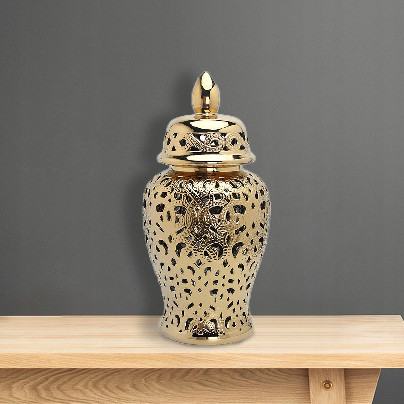 Большой керамический имбирный контейнер, украшение хранения, китайская резная решетчатая ваза с крышкой