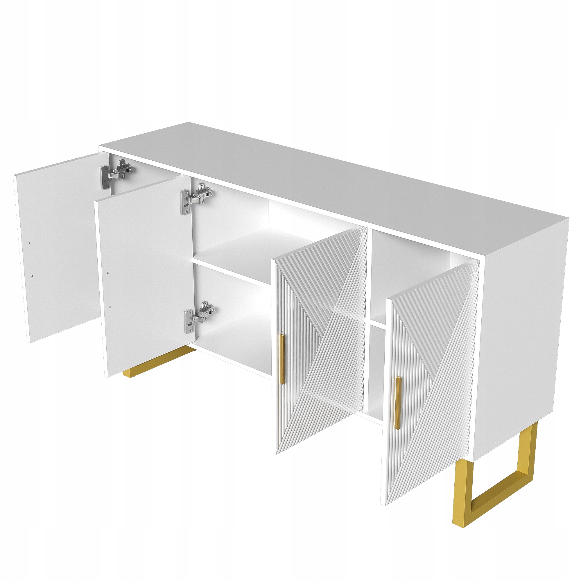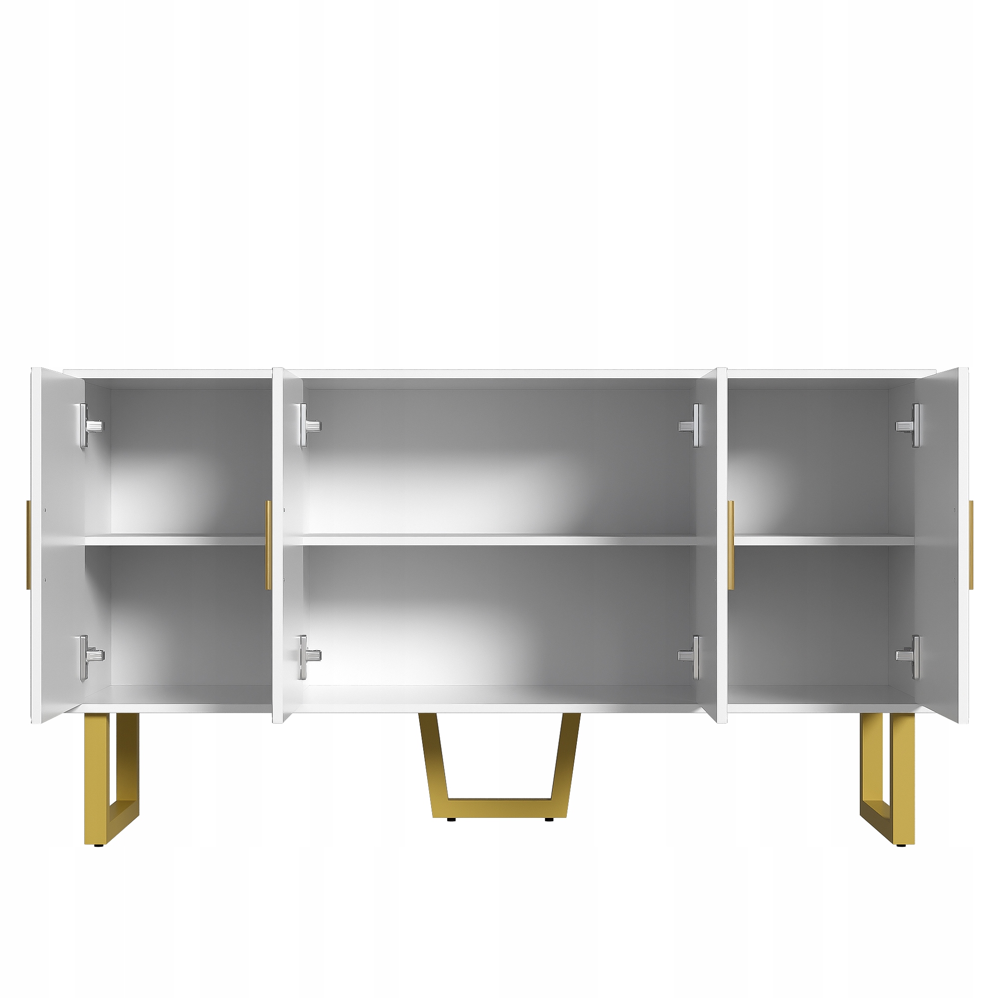 современный, роскошный белый буфет шириной 150 см с высокими глянцевыми дверями и золотыми ручками, 4-дверным дизайном, полки с регулируемой высотой