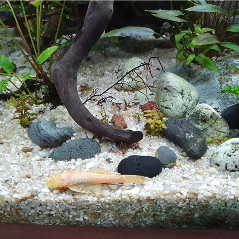 - Яркий оттенок гравия выглядит чрезвычайно естественным в аквариуме, тонко подчеркивая цвета рыбы и растений