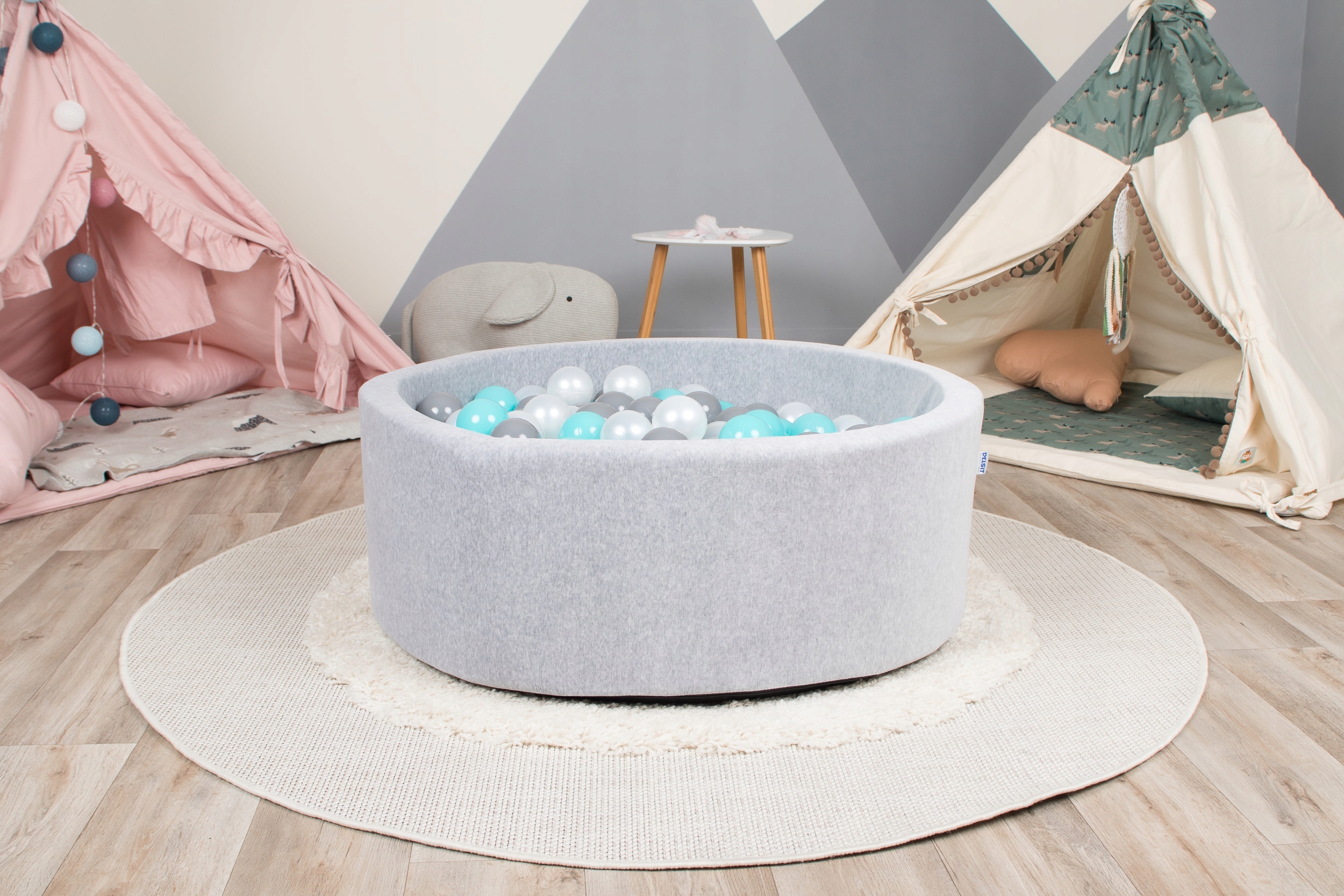 Бассейн из мягкой пены со высокими стандартами безопасности, с хлопчатофтяной, которую легко взять и прачечная. У шаров есть сертификаты en-71 и ce , что гарантирует безопасность во время игры.