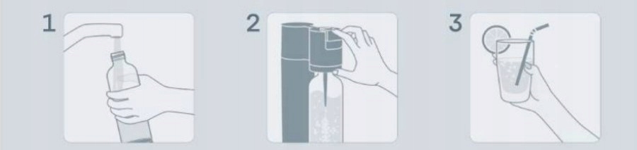 1. Просто заполните бутылку 2. Подключите ее к устройству 3. Удерживайте кнопку