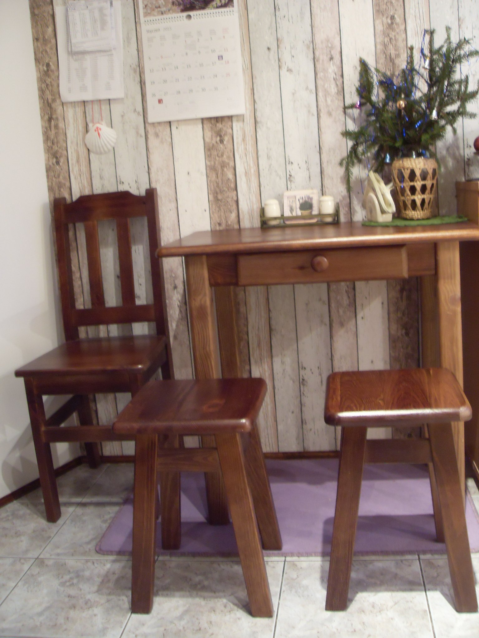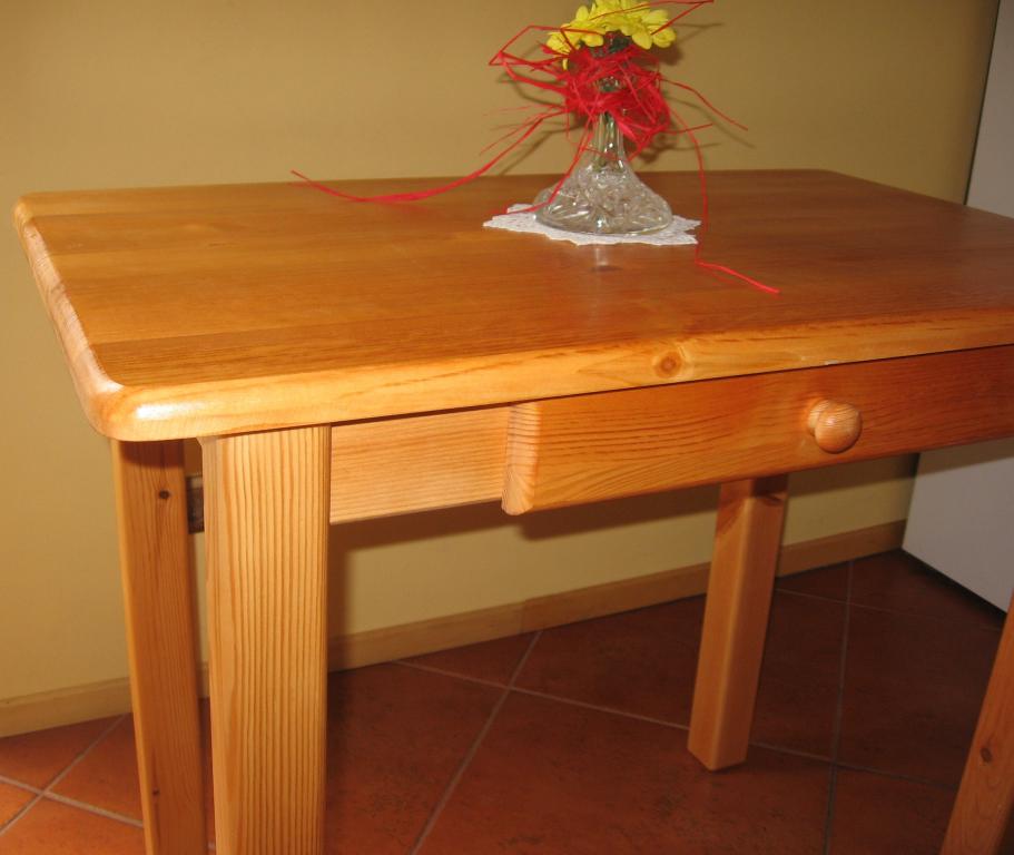 Сплошной деревянный стол, изготовленный из высококачественной сосны. Дважды нарисован бесцветным лаком. Сделано очень твердо, он будет служить много лет. Конструкция таблицы массивна, что означает, что он может занимать относительно высокие нагрузки. Подходит для кухни, столовой, в качестве комнаты для комнаты. Он также идеально подходит для всех видов общественных учреждений, таких как: бары, рестораны, отели, гостевые дома и т. Д. Установка состоит только для их затягивания.