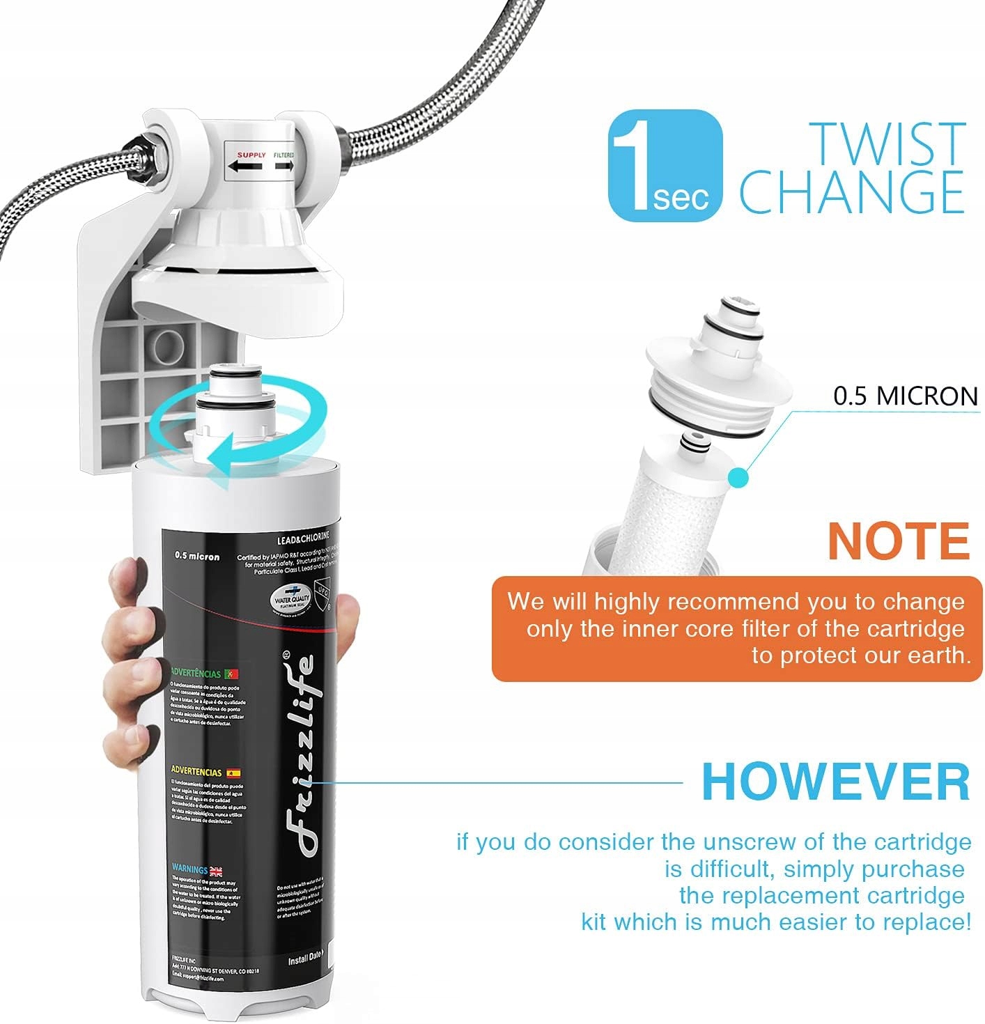 FrizzLife под системой фильтрации воды. Прямая эффективность подключения под метром фильтрации питьевой воды-0,5 микрона быстрого изменения удаляет 99,99% свинца, хлора, неприятный вкус и запах h1> h1>