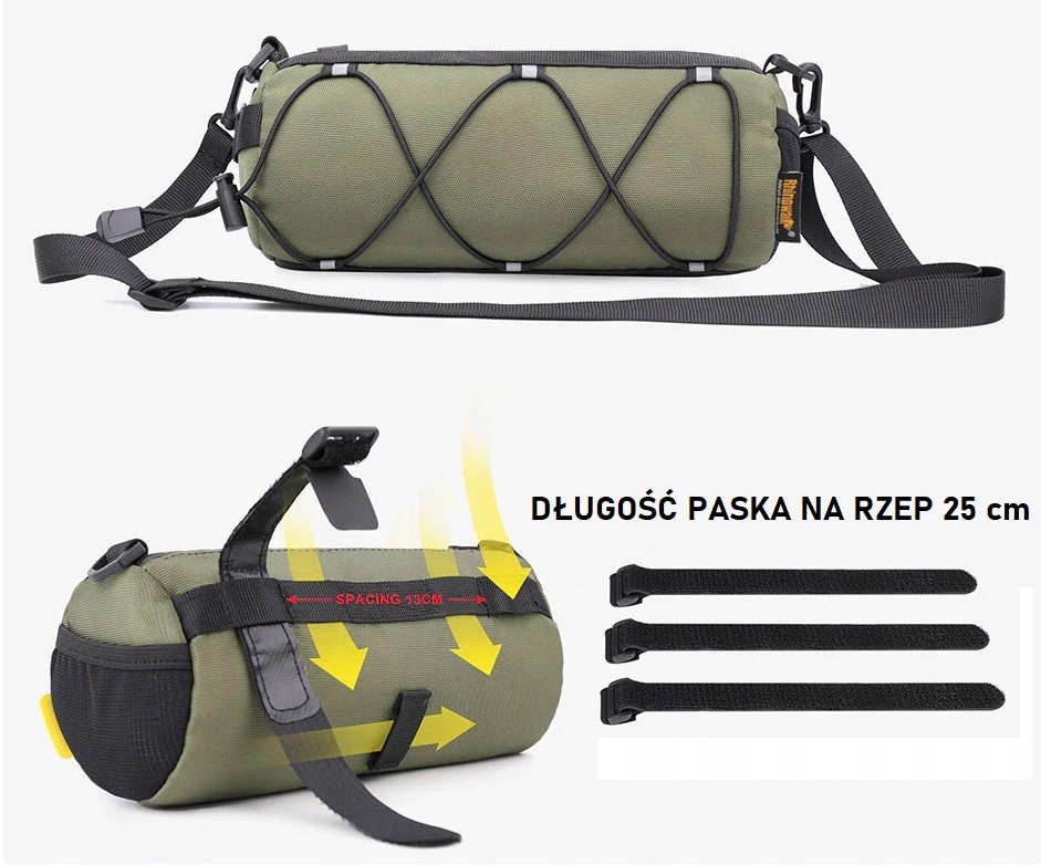 Сумка изготовлена из очень прочного и легкого материала. . Крепится к велосипеду тремя ремнями-липучками. Дополнительный ремень для ношения на плече. В передней части сумки имеется шнурок, к которому можно прикрепить карту или другие мелкие предметы. Дополнительно тубус оснащен светоотражающими полосками.