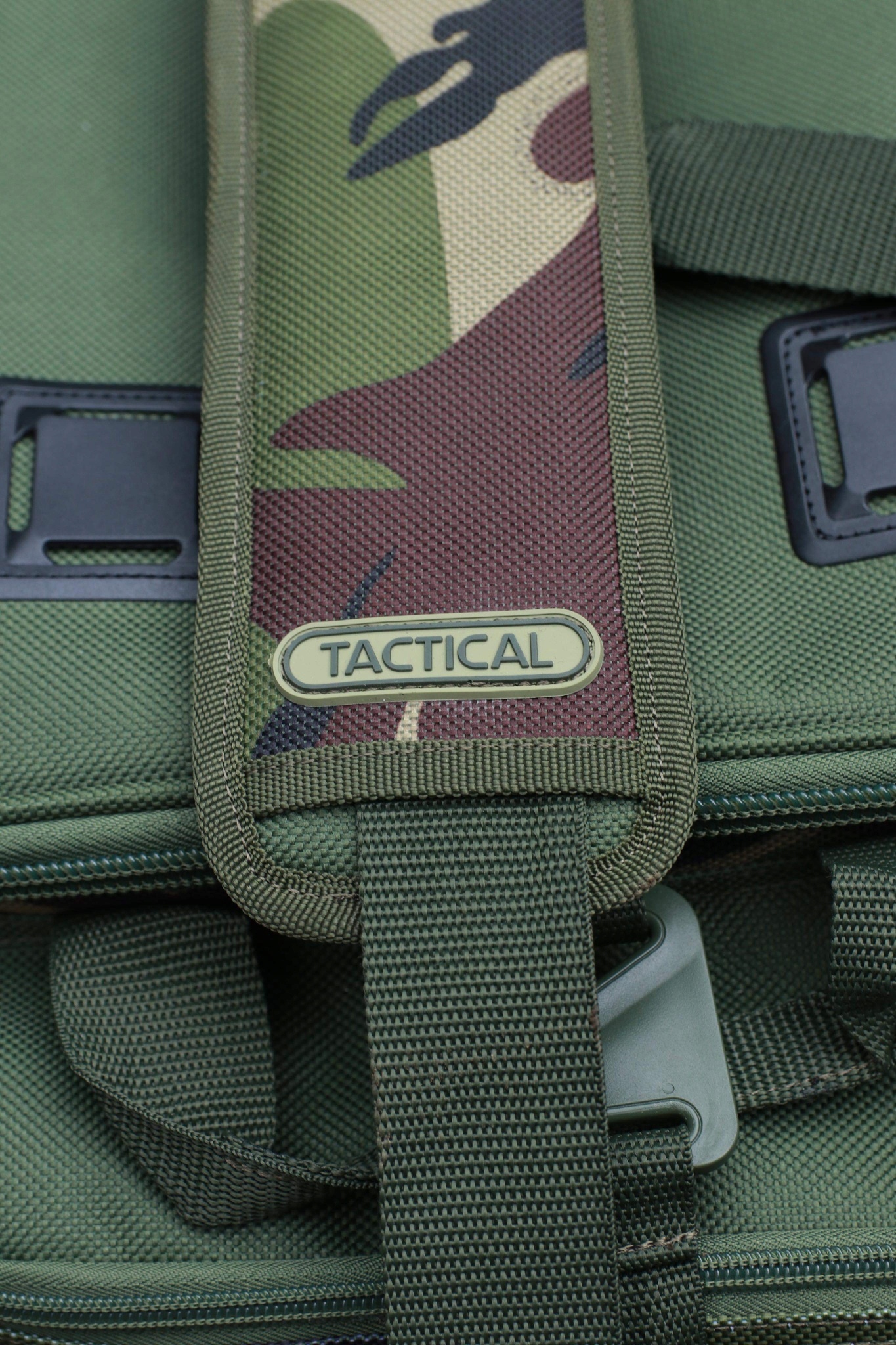 В сумке Tactical HD Carryall достаточно места для вашего снаряжения. В комплект входит удобный плечевой ремень и три внешних кармана для других необходимых аксессуаров. Сумка оснащена четырьмя ремнями-липучками для дополнительного крепления необходимых вещей. Внутри имеются сетчатые карманы для удобного обзора. Как и в каждой сумке, здесь вы также найдете две ручки, которые облегчают переноску на короткие расстояния. Требованием бренда Wychwood является использование прочных и долговечных застежек-молний, которым максимально соответствуют молнии Bespoke. Для защиты внутреннего пространства от влаги на дне сумки использован прочный и моющийся материал.
