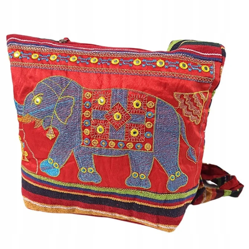Сумка через плечо, сумка, сшита вручную из разноцветного хлопка. Имеет большой внутренний карман и карман поменьше, например, для документов, все из хлопка. Восточная женская сумочка имеет интересный дизайн, в том числе аппликацию с изображением индийского слона с поднятым хоботом, застегивающуюся на молнию.
