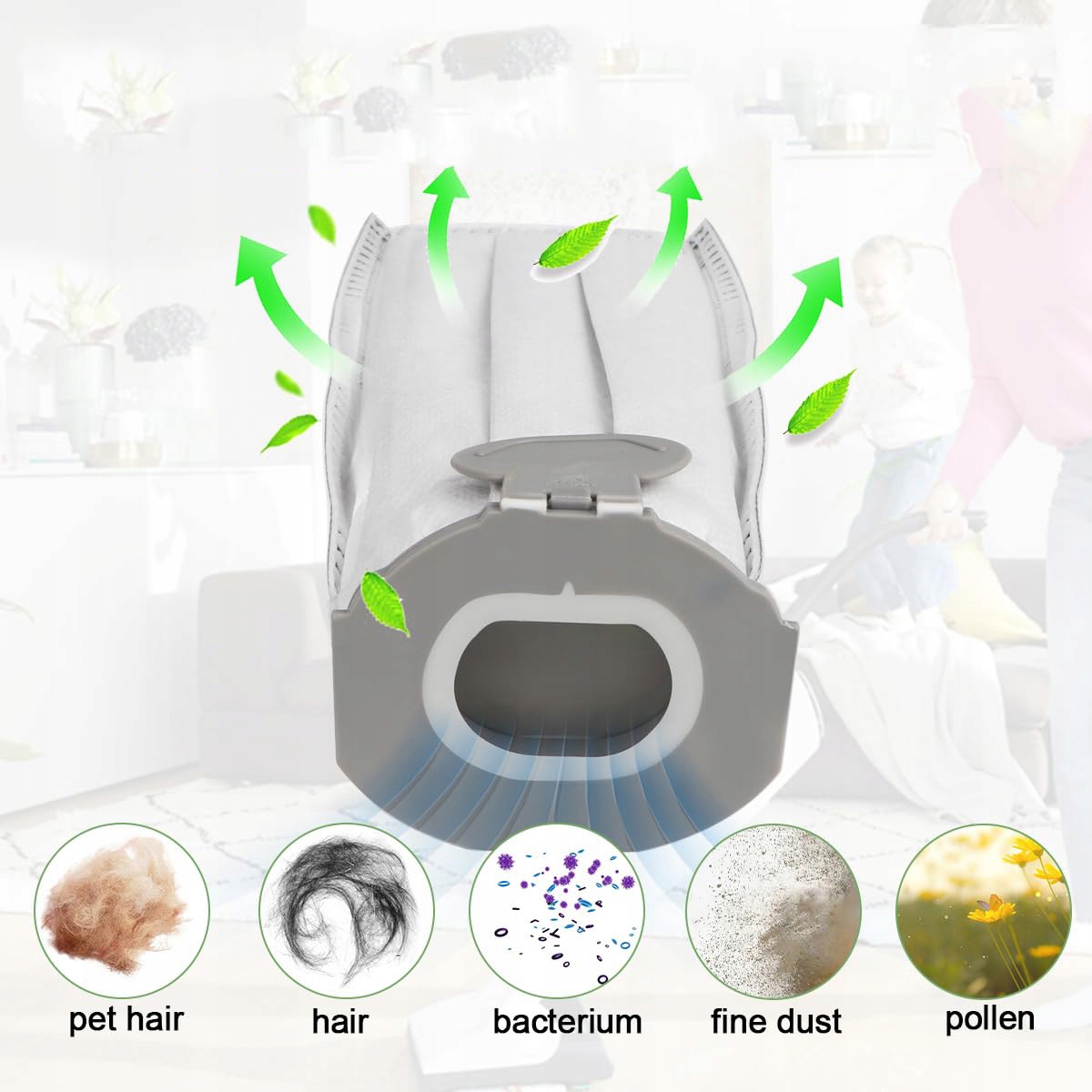 Несмотря на номинальный объем 0,8 л, фильтр-мешок позволяет пользователю пылесосить до 8-12 недель без контакта с пылью благодаря запатентованной складной конструкции. , что значительно увеличивает внутреннюю поверхность сумки.