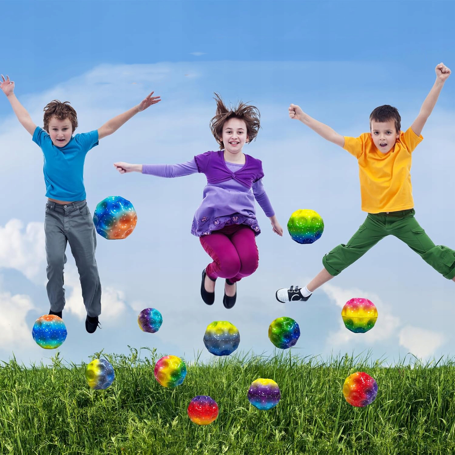🔷 Уникальный звук щелчка: прыгающий мяч приятно удерживать и бросить, что делает его забавным сенсорным мячом для всех возрастных групп. Космический мяч для прыжков имеет 30 специального кратера и создает уникальный звук, когда он попадает в тротуар.