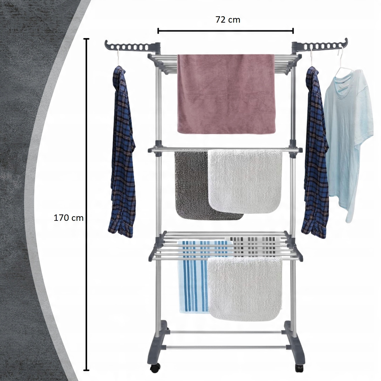 Стоящая сушилка для белья, 3-х ярусная, складная, грузоподъемность 51 кг XXXL