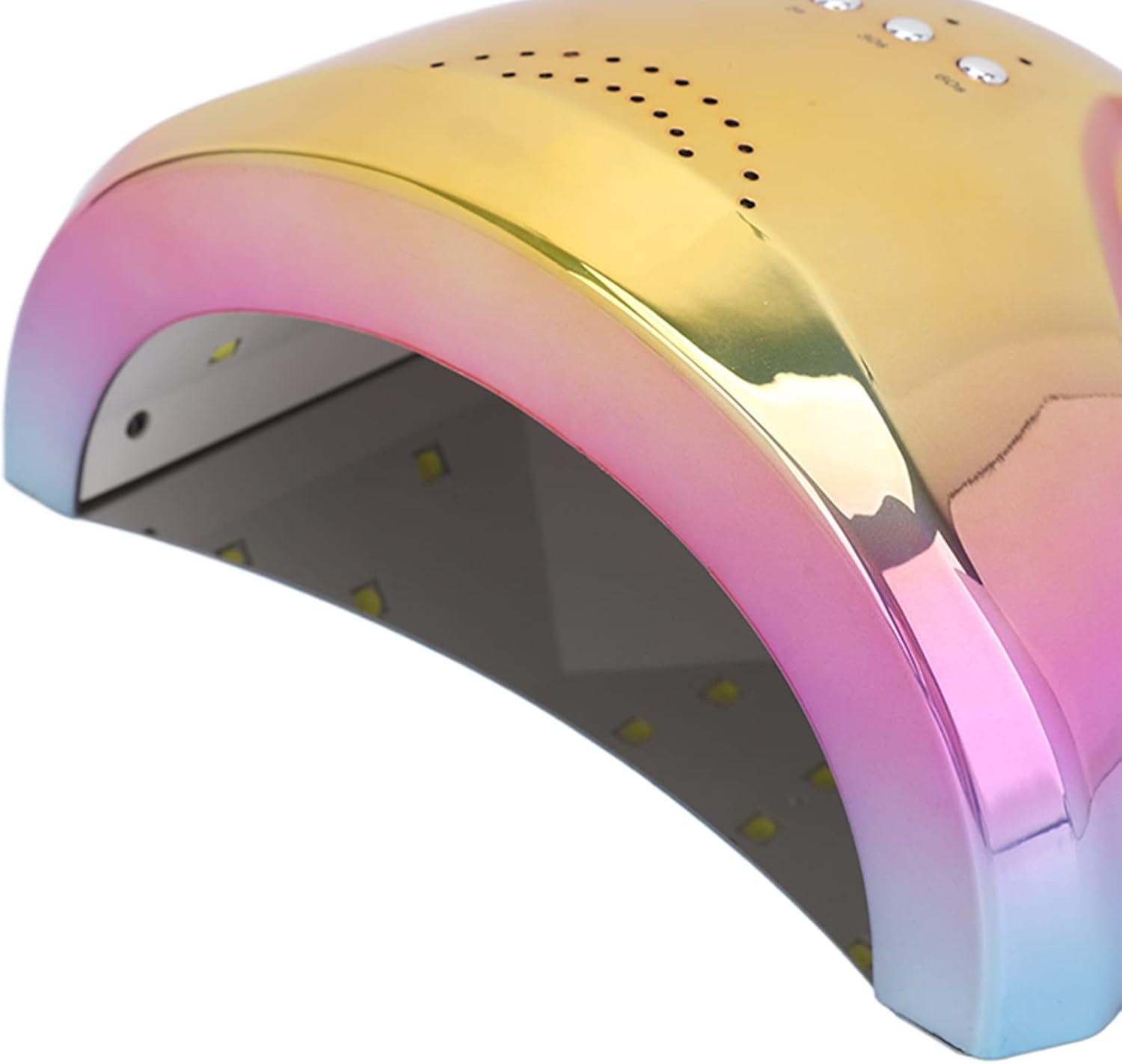 Быстрое затвердевание с помощью 30 шариков лампы, отсутствие мертвых углов, быстрый обжиг клея, короткое время ожидания, что позволяет быстрее завершить работу с ногтями. Легко носить с собой. Гелевая сушилка для ногтей легкая, мощная, экономит время, компактна, портативна, проста в использовании и чистке, ее можно использовать для ногтей. Безопасные в использовании шарики светодиодной люминесцентной лампы используются для эффективной фильтрации волн черного света от рук, чтобы предотвратить почернение рук и блики, вызванные ультрафиолетовым светом. Профессиональный дизайн, съемная нижняя заглушка для вопросов, нижний вопрос более удобен в использовании. Ключевой дизайн 5s, 30s и 60s, часто используемые клавиши времени. Инфракрасная индукция. В незапрограммированном состоянии свет включается автоматически, когда вы подносите руку, и автоматически выключается, когда вы убираете руку.