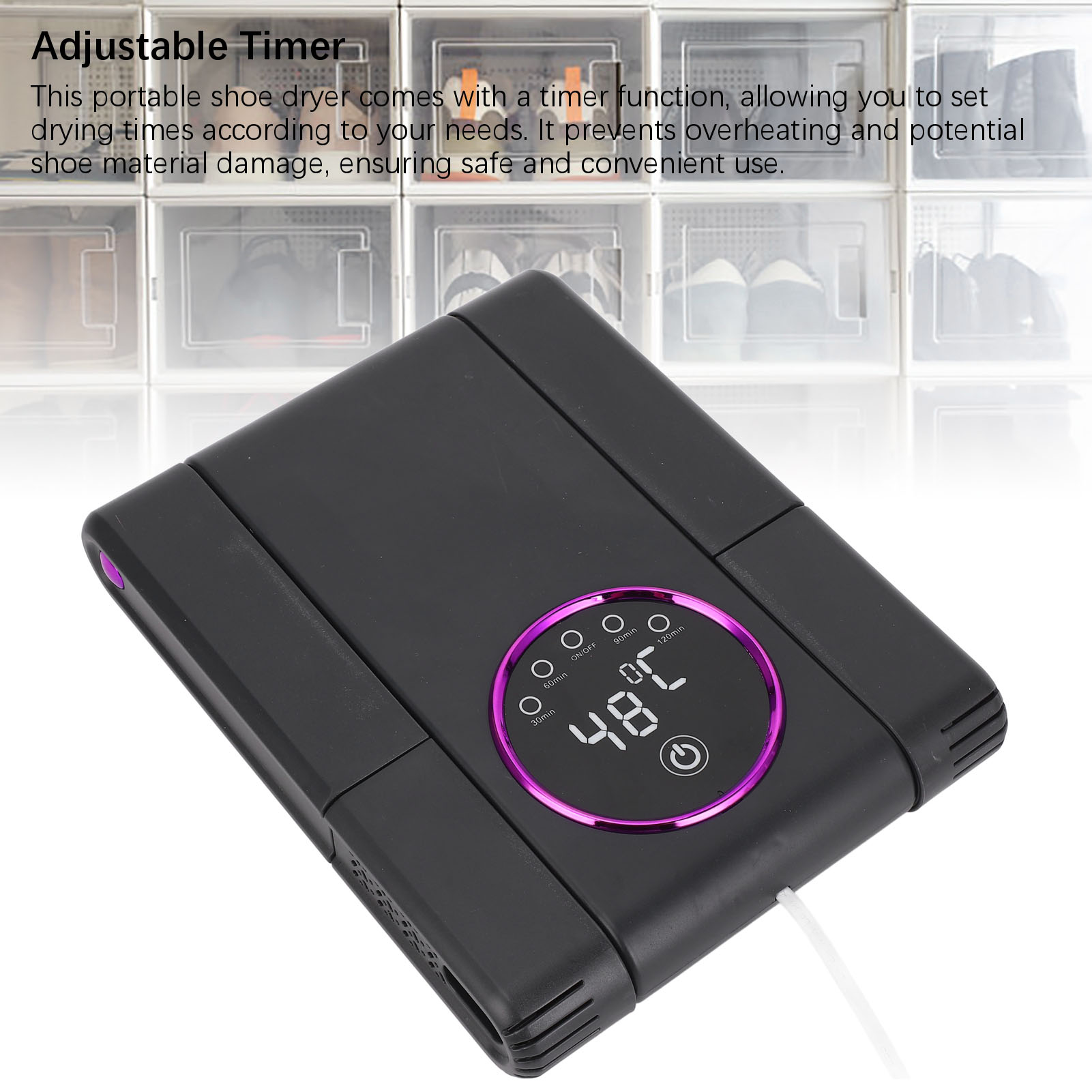 4. Регулируемый таймер: эта портативная сушилка для обуви оснащена функцией таймера, что позволяет время настройки высохнуть в соответствии с вашими потребностями. Это предотвращает перегрев и потенциальные повреждения материалов для обуви, обеспечивая безопасное и удобное использование.