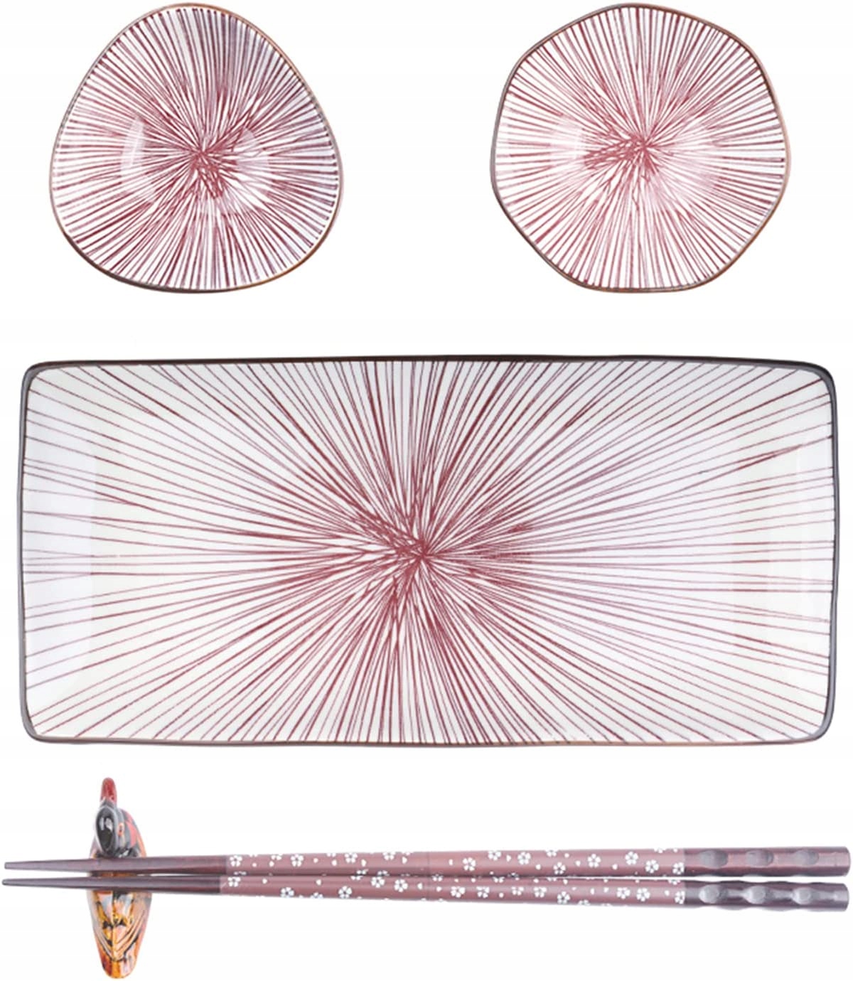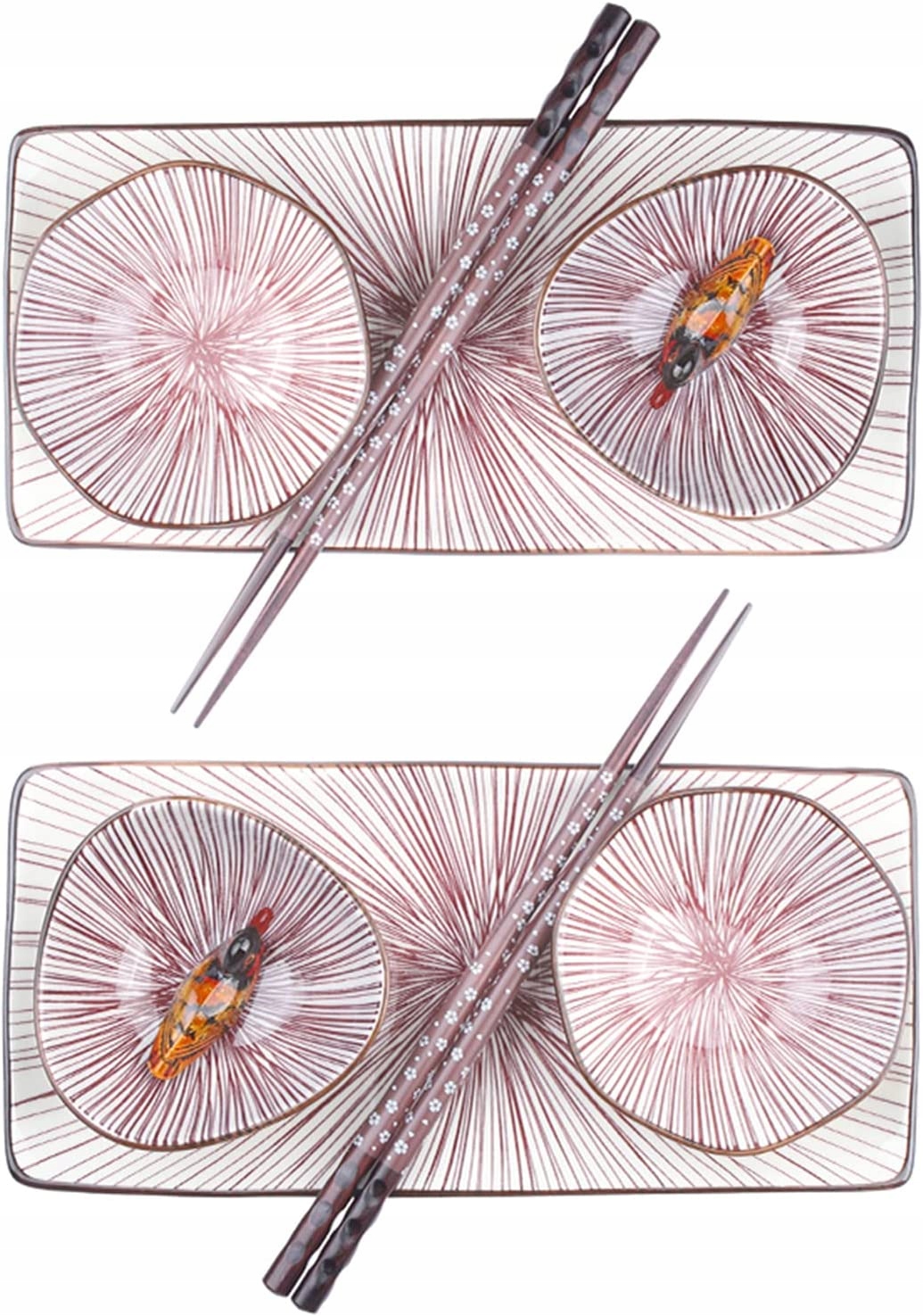 . Суши -пластины, 2 соуса, 2 чаши для закусок, 2 пары палочек и 2 ручки для выбранных палочек для краебук с высоким качественным фарфором, после сжигания при высокой температуре 1300 градусов, это не экологически чистость, вы можете использовать в микроволновых и промывании международных продуктов в посыпающих продуктах. инструкции