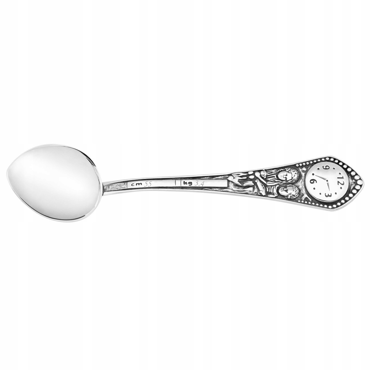 На ложке указаны такие данные как: см, кг, время рождения, имени и даты.