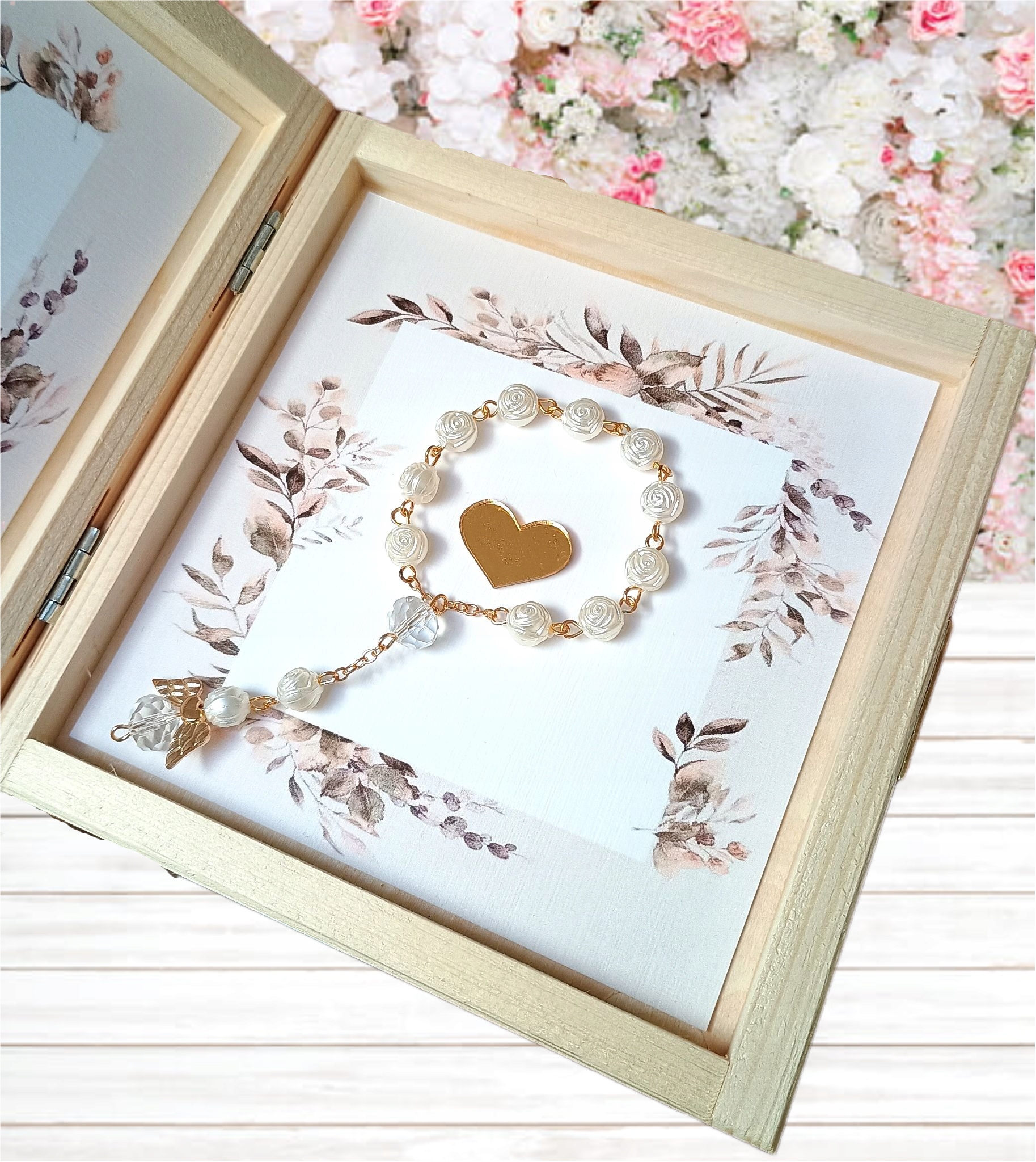 Деревянная коробка с персонализированными пожеланиями и розариями