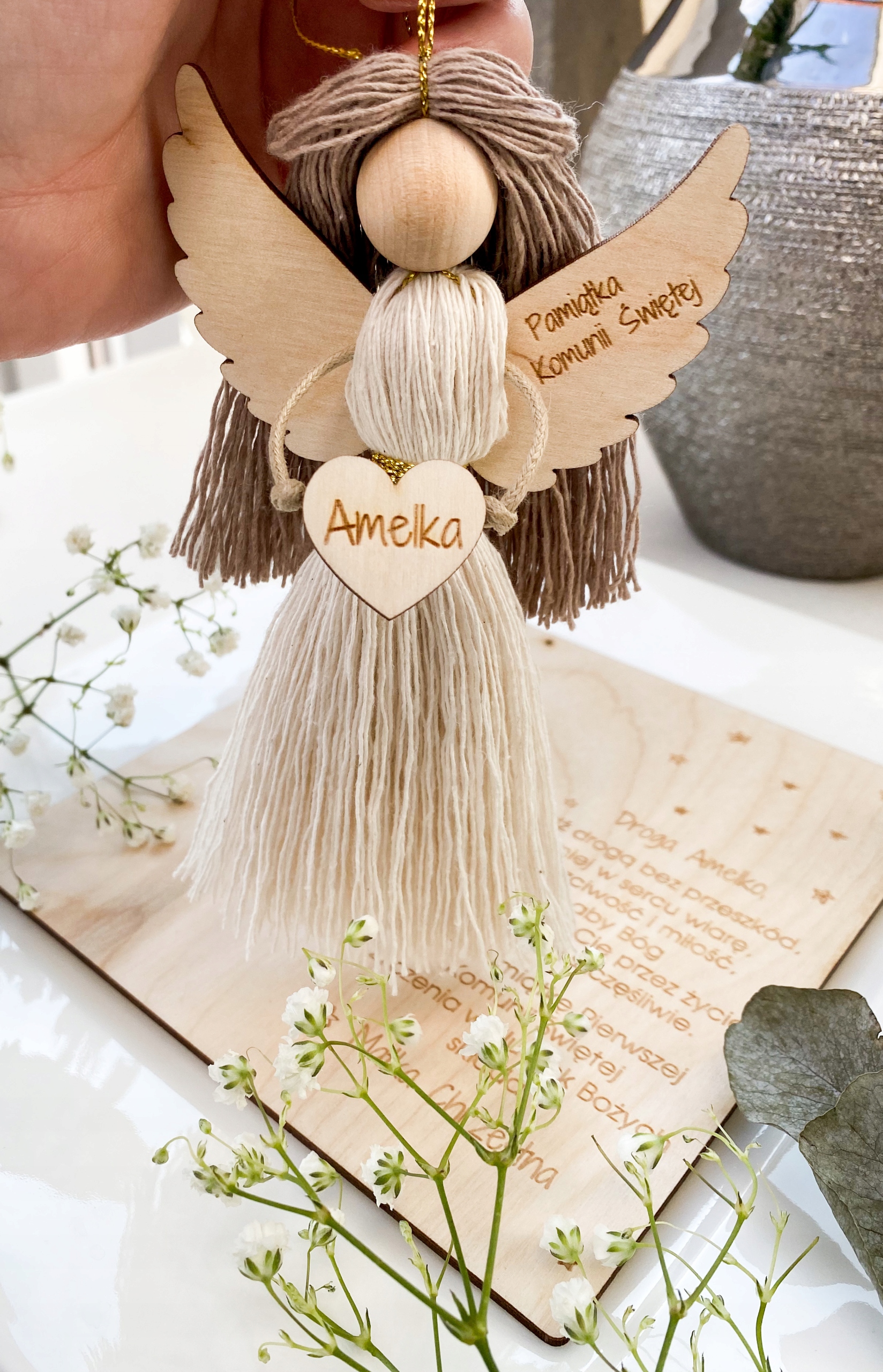 Идеальным сувениром к Причастию станет именная деревянная открытка по случаю принятия таинства Первого Причастия с пожеланиями и ангелочком ручной работы.