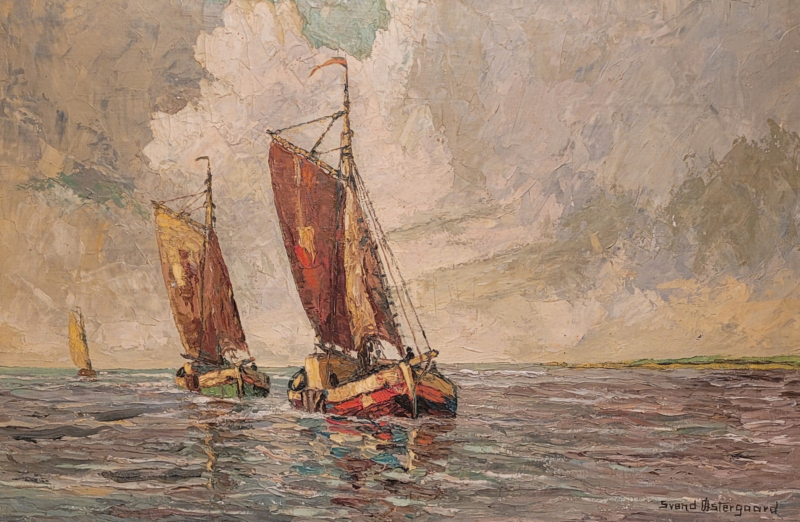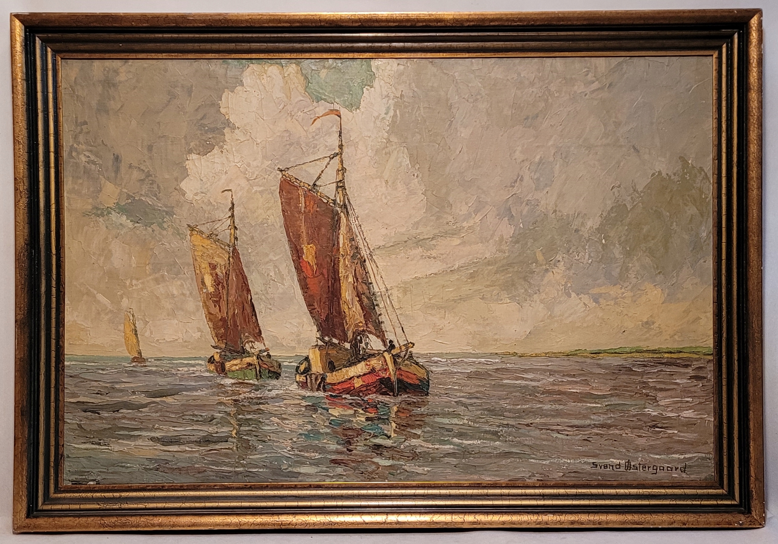 SVEND OSTERGAARD - «РИБАЛЬСЬКІ ЧОВНИ», красива стара картина маслом.