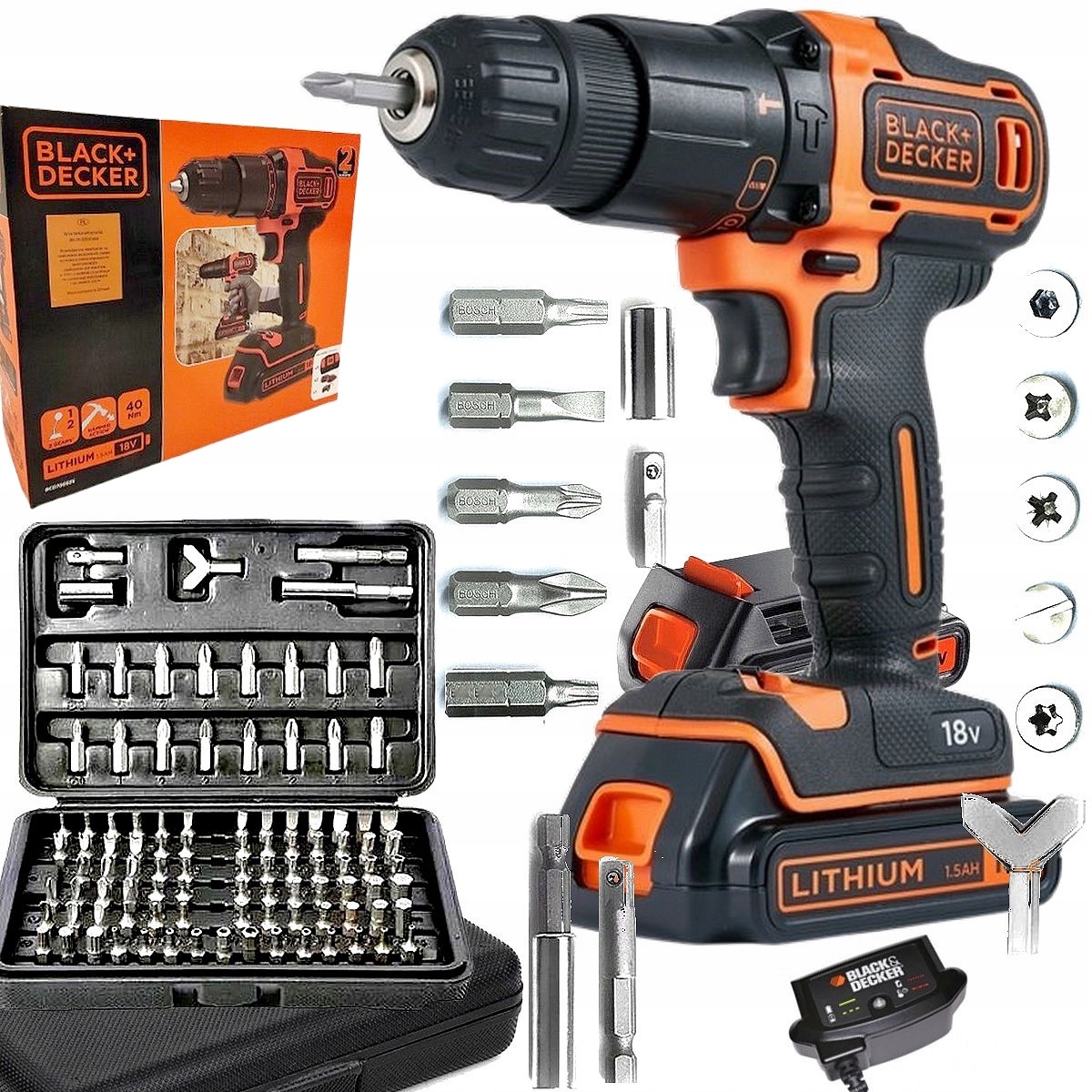 ⭐ Black Decker BCD700 Drill Rillier с 18 В h1> включает в себя: · 2x батарея 1.5AH + зарядное устройство + транспортное мешок h2>