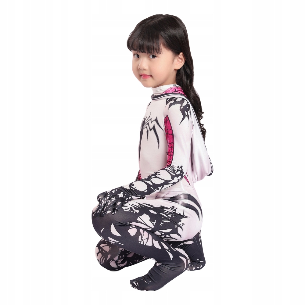 Цельный костюм девушки-паука белого, розового и черного цветов. Хорошо сшит, слегка эластичен, застегивается на молнию. Благодаря нашему предложению каждый поклонник этой супергероини перевоплотится в ее любимого персонажа комиксов. Интересный костюм позволит вам совершить путешествие в мир супергероев, что позволит вам надолго вспомнить детство.