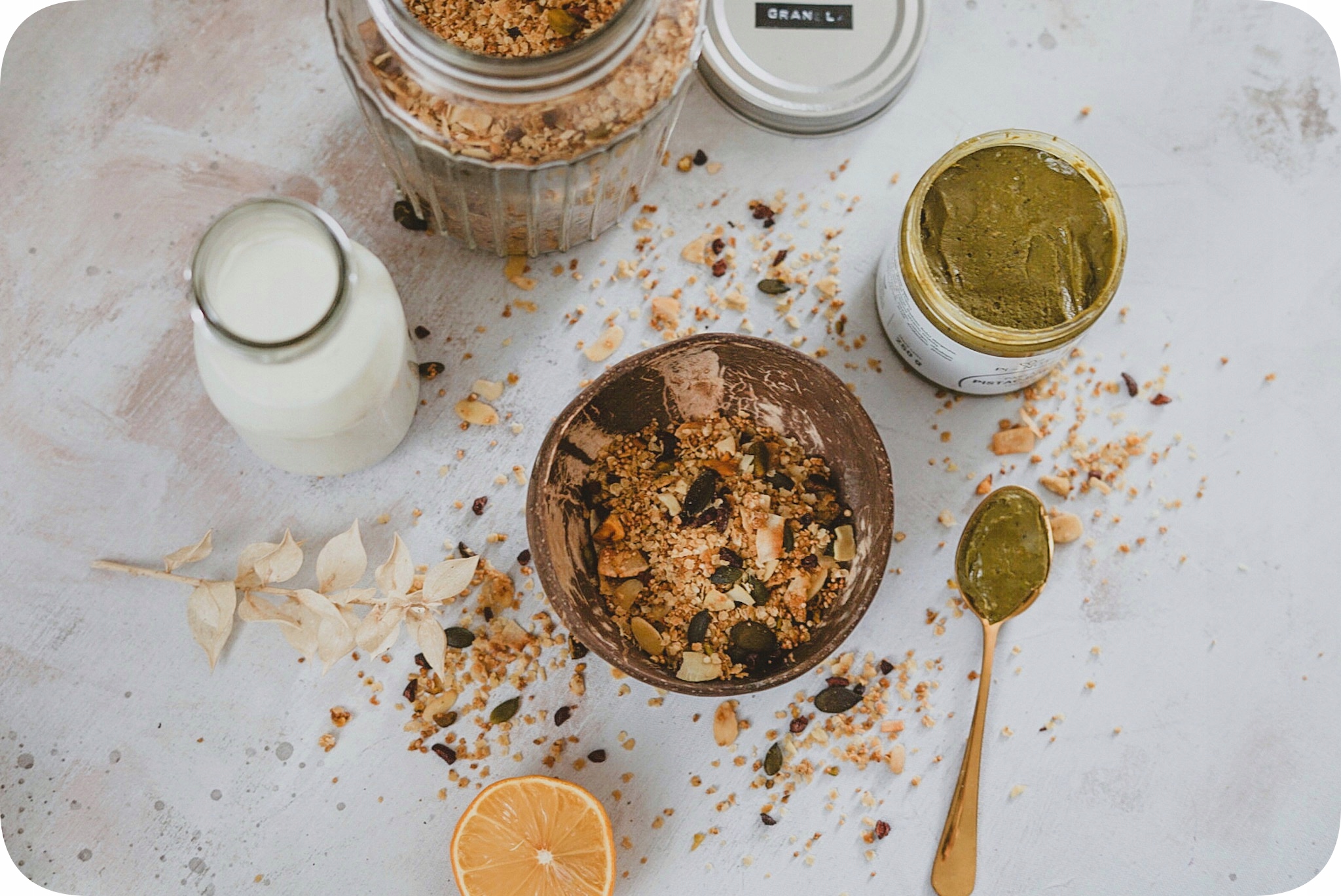 ➡ содержится в масле с лесными орехами B Клетчатка и белок продолжают ощущение сытости в течение долгого времени, помогая потерять ненужные килограммы.