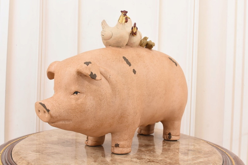 Свинья с цыплятами - фигурку для фермера - Украшение скульптуры - подарок
