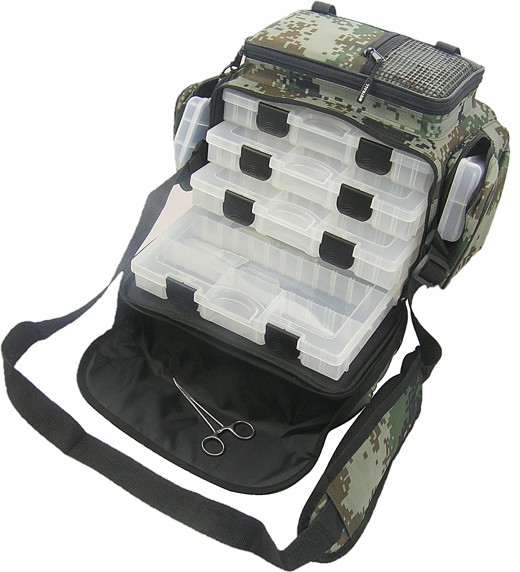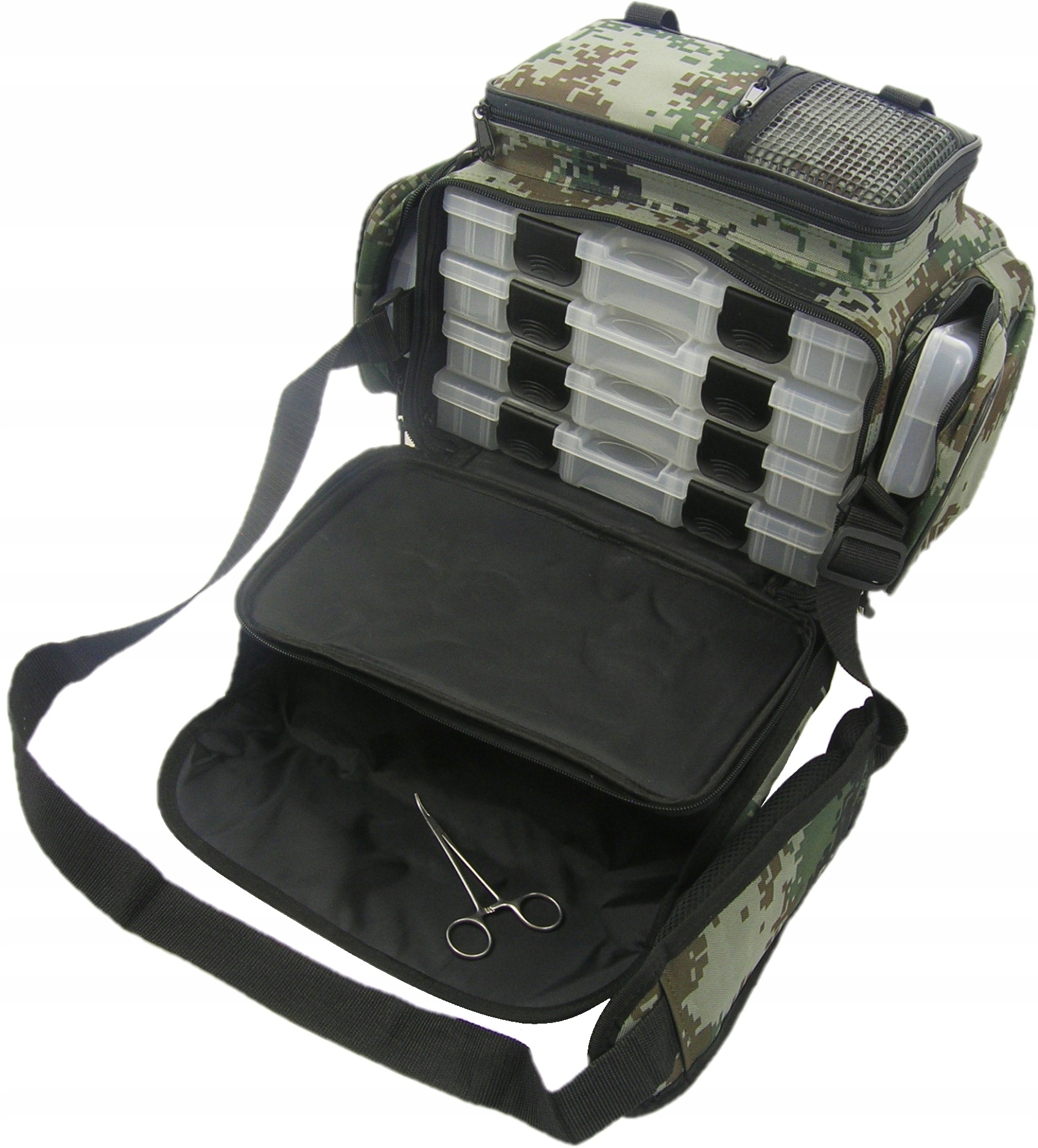 Средний пакет для оборудования и приманки, которые содержат 5 больших ящиков для приманок и 4 маленьких для аксессуаров. Рука.