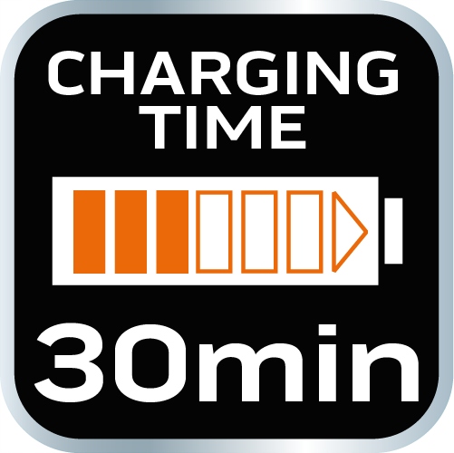 - Время зарядки аккумулятора: б> 30 мин.