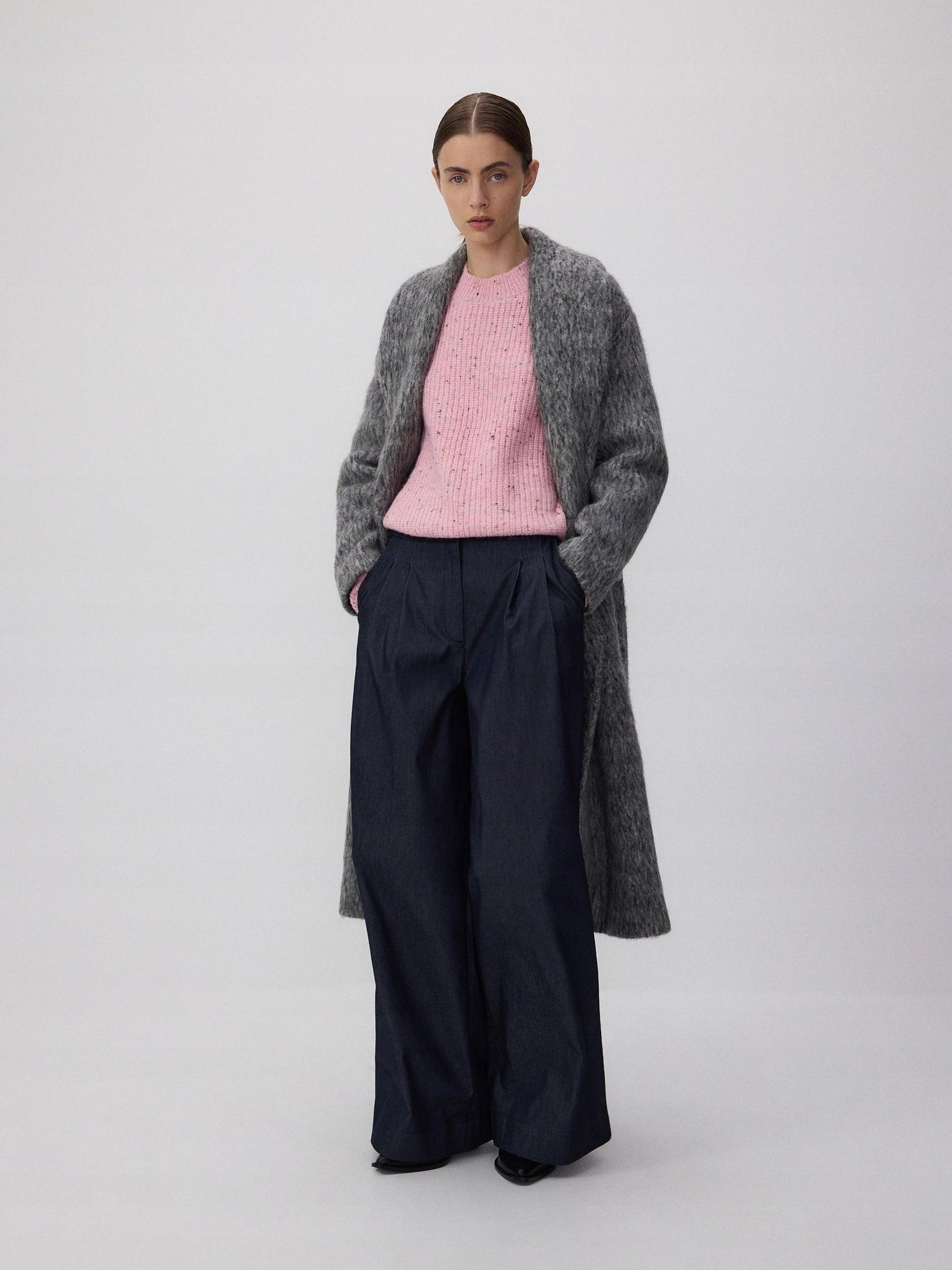 Светло -розовый свитер с длинной шерстяной классикой шерсти зарезервирован M