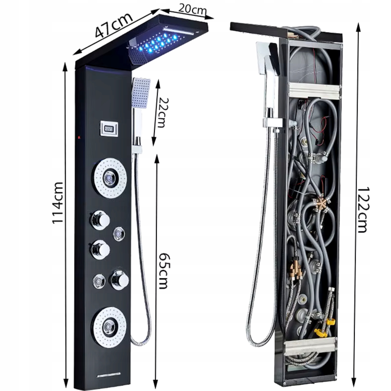 Светодиодная душевая панель с гидромассажем, тропическим душем, водопадом, черная