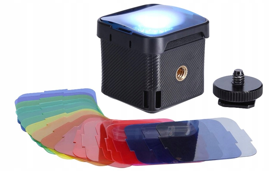 - Компоненты в комплекте: Одиночная подсветка камеры Lumen, адаптер для вспышки, крепление цветного фильтра, цветной фильтр ( 20 шт.), USB-кабель для зарядки, страховочная петля.