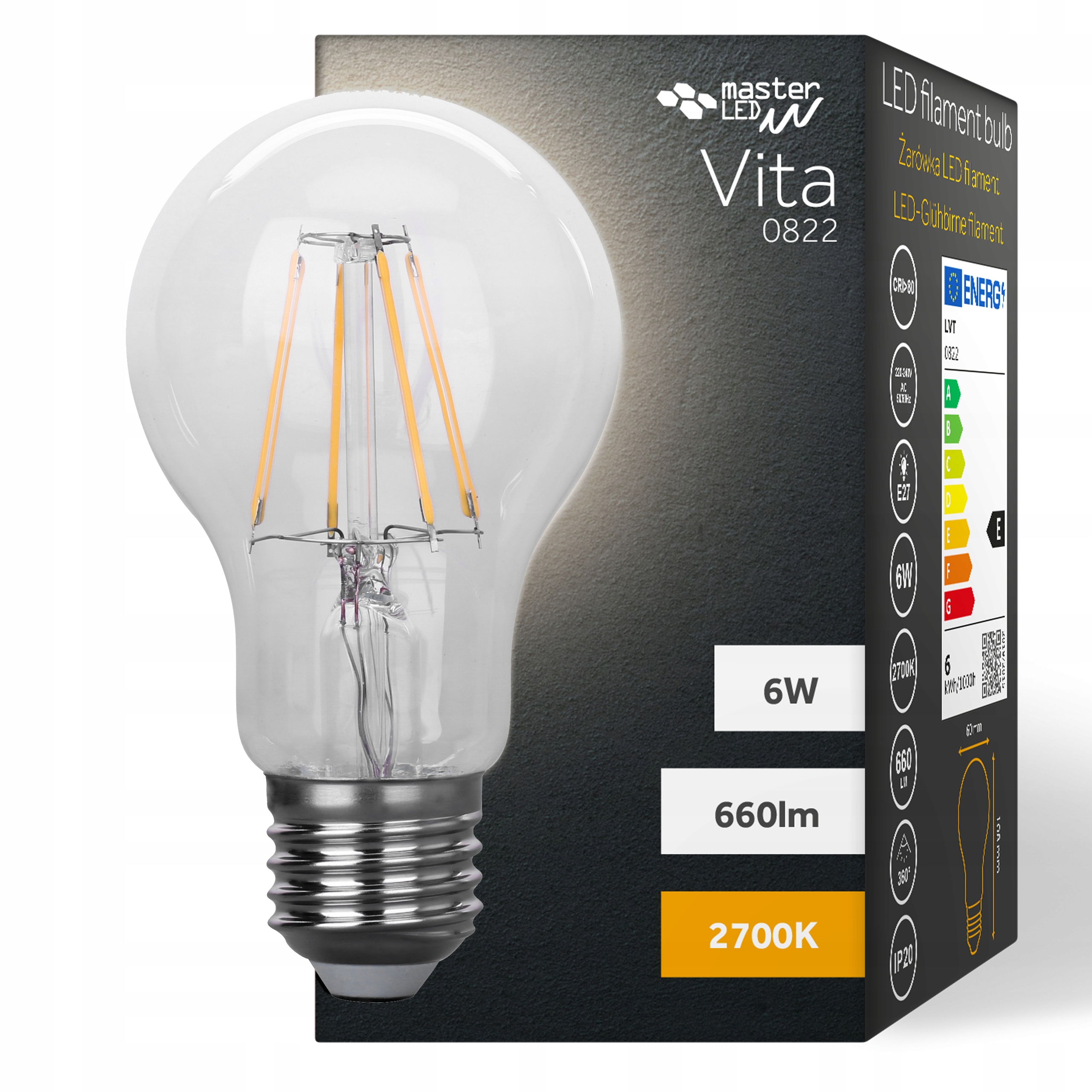 Светодиодная лампа E27 Filament Vita A60 2700K 6W (0822)