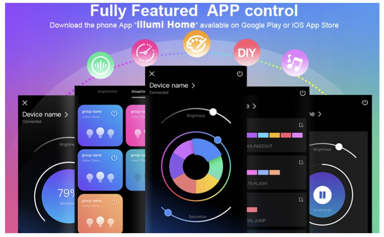 Вы можете управлять множеством светодиодных лент одновременно или создать группу для всех полос и управлять ими с помощью приложенияi или дистанционного управления . Это идеальное решение, которое позволит вам полностью контролировать освещение в вашем доме.