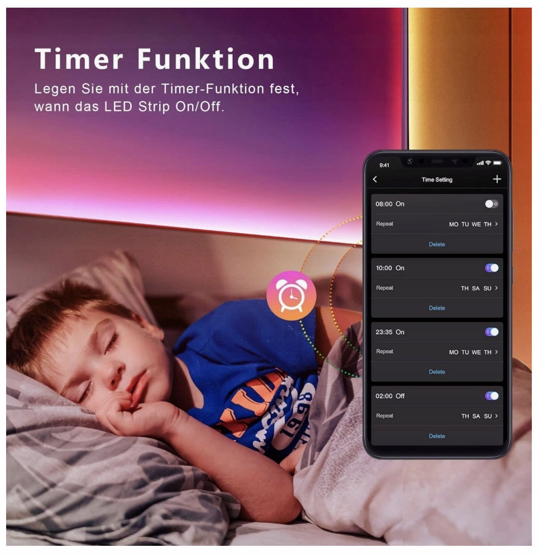 Функция таймера в нашей светодиодной ленте Bluetooth позволяет запланировать автоматическое включение и выключение освещения в выбранное время. Это идеальное решение, которое предлагает: