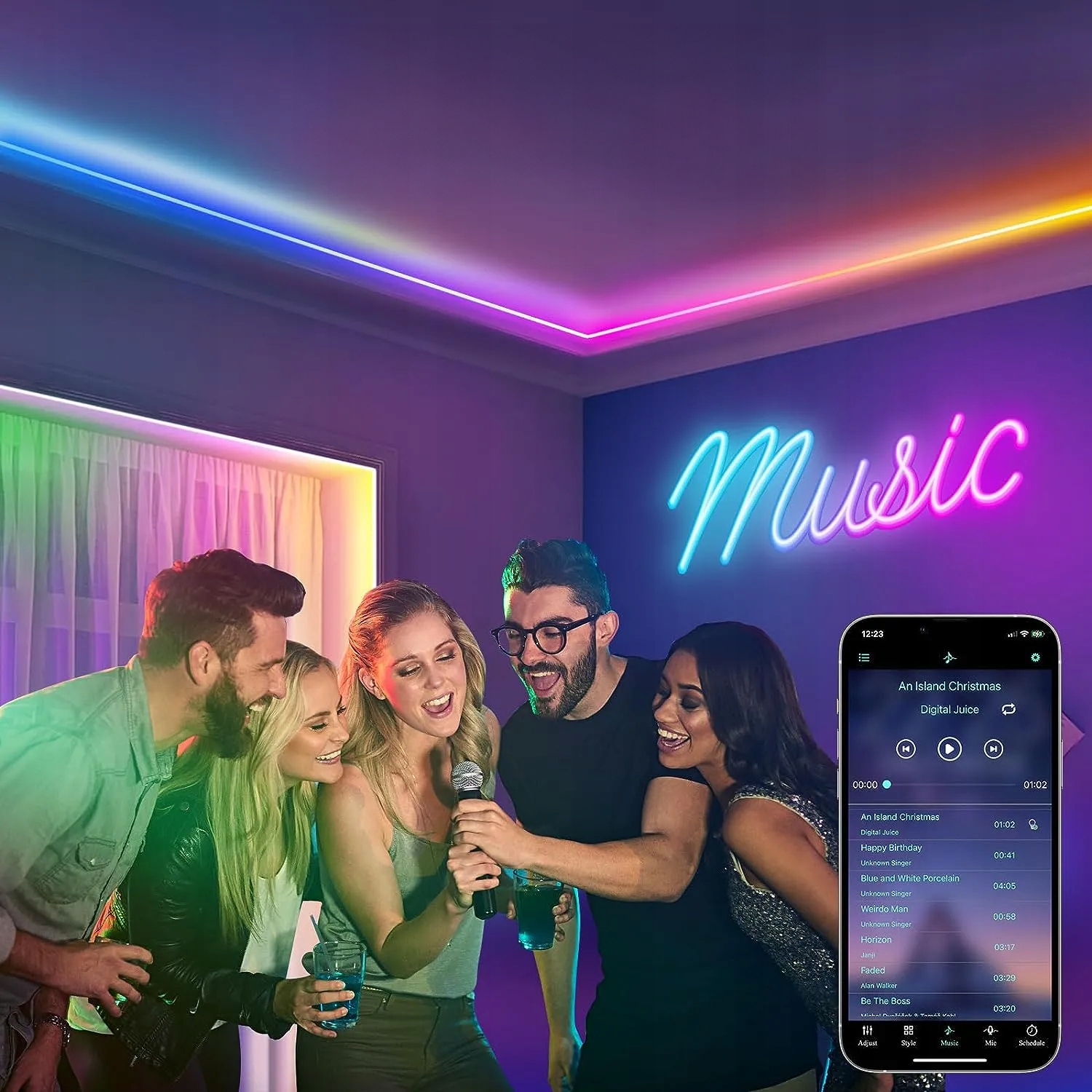 2⃣【 интеллектуальное применение и голосовое управление】 После успешного сочетания светового пояса от Wi-Fi (только Wi-Fi 2.4G, Wi-Fi 5G не поддерживается), вы можете использовать «умную жизнь» или голосовое применение (Amazon Alexa/Google Home Assistant) для контроля, чтобы контролировать Sepemant Sepemant, чтобы не использовать Sepemant Sepement. Изменение в цвете приводного света). Благодаря 16 миллионам цветов на выбор, это действительно выпускает ваши руки и обогащает вашу жизнь.